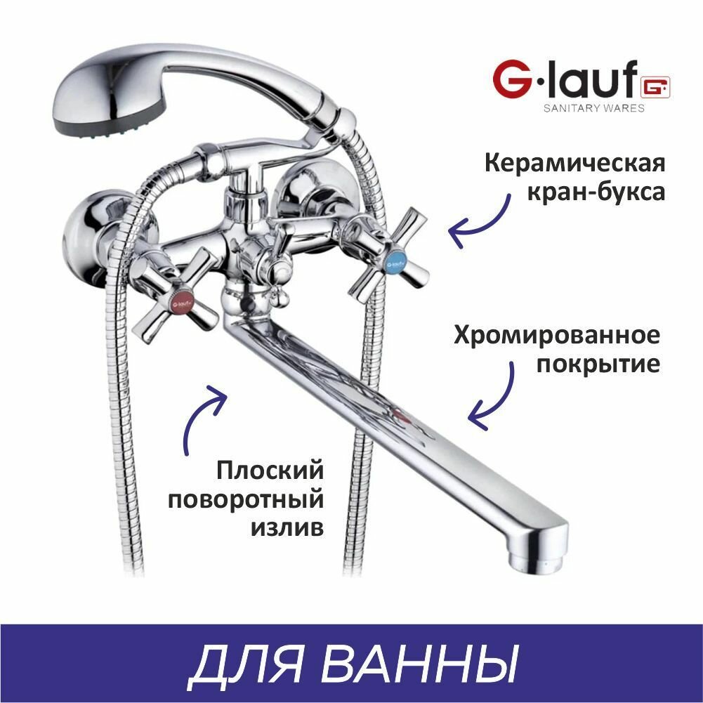 Смеситель для ванны с душем двухвентильный, кран в ванную G.lauf QFR7-C722, хром