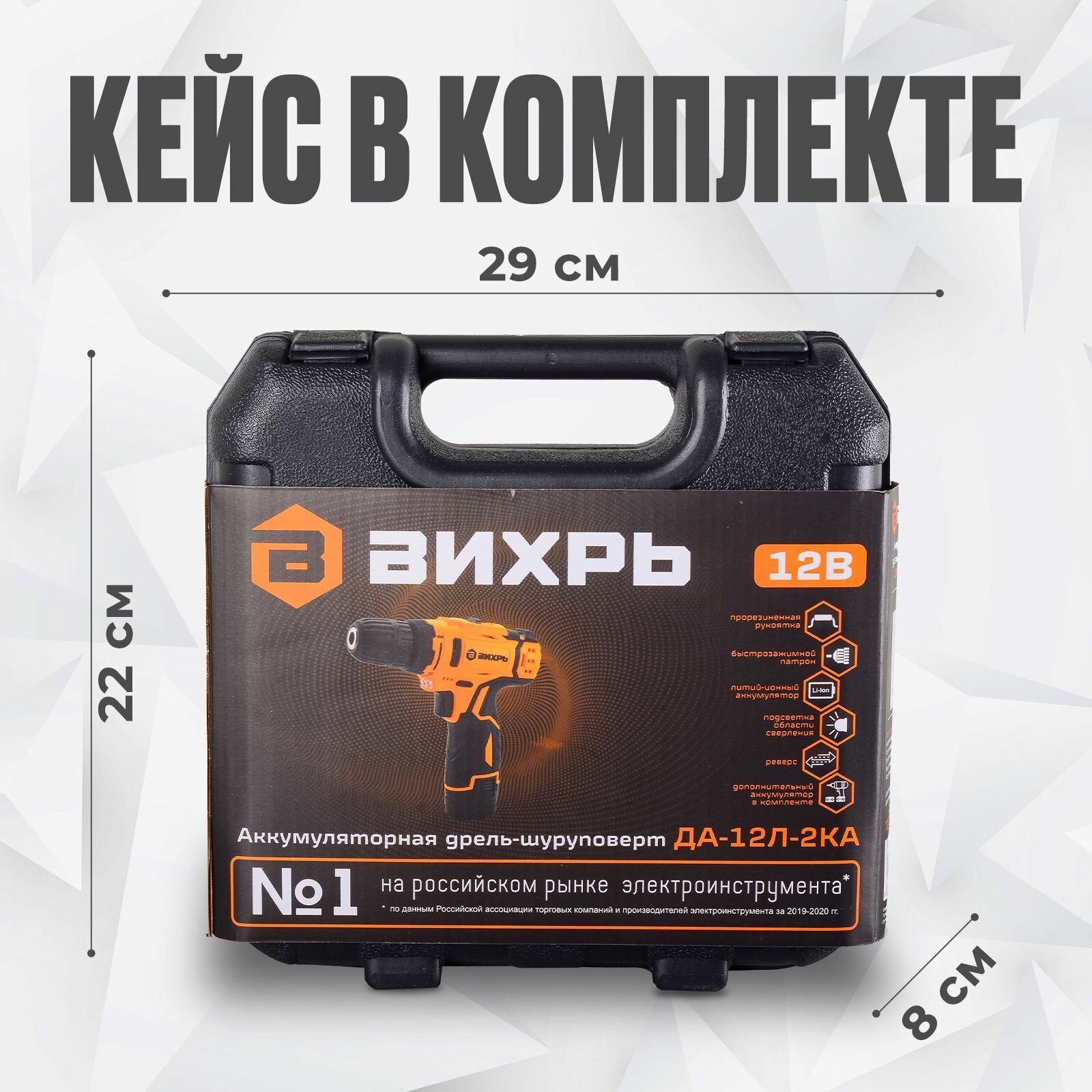 Дрель-шуруповерт Вихрь ДА-12Л-2КА аккум. патрон:быстрозажимной (кейс в комплекте) (72/14/26)
