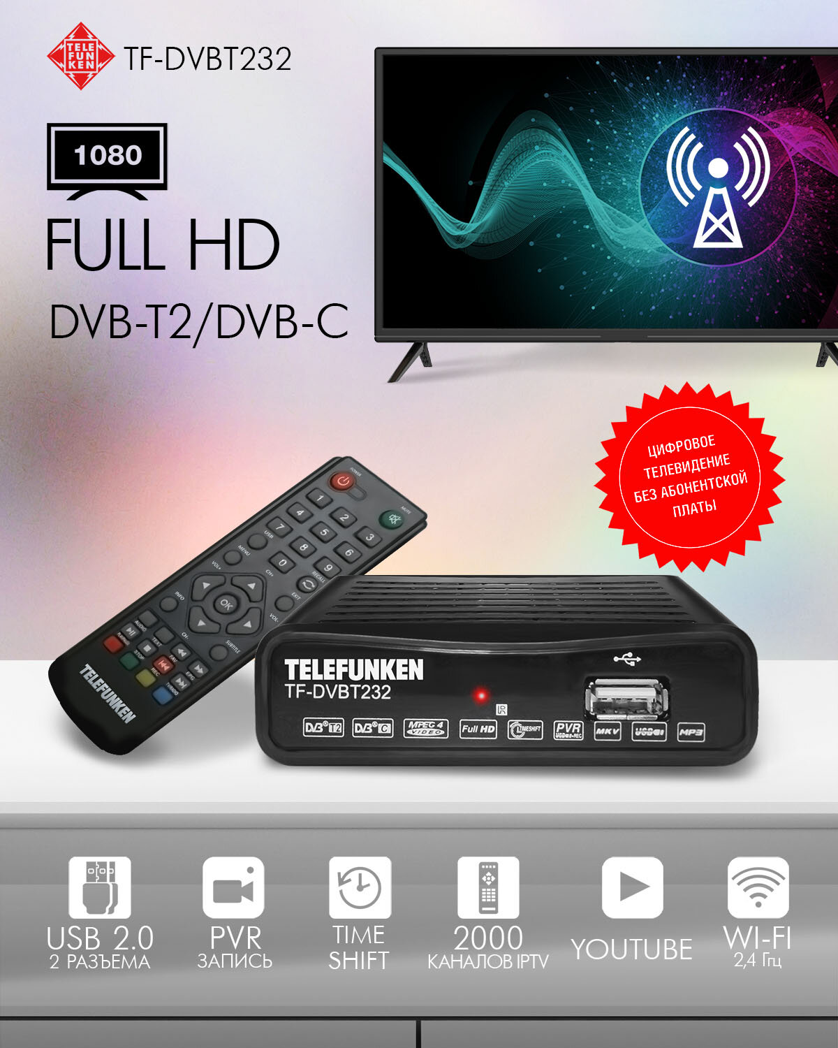 Ресивер цифровой TELEFUNKEN TF-DVBT232(черный)