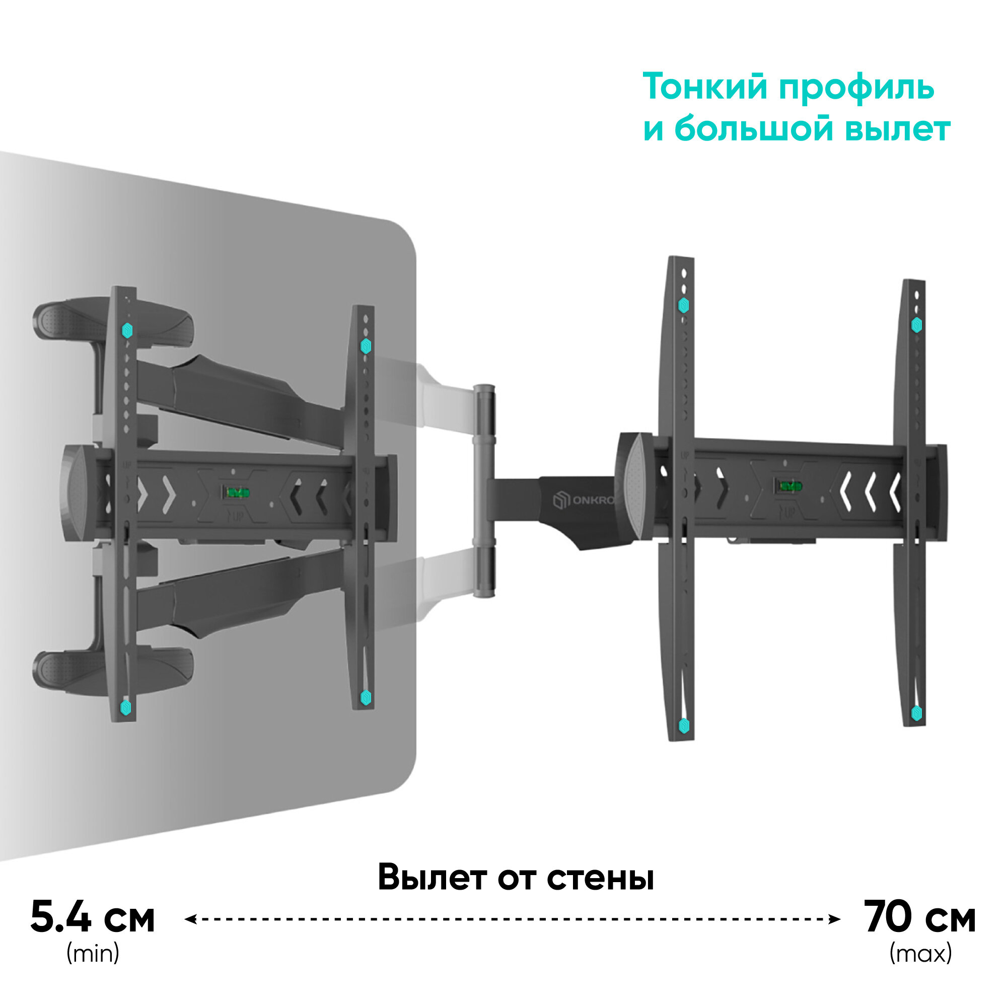 Кронштейн для телевизора Onkron 40-75" макс 400*400 наклон -5°/+8° поворот 180? Макс нагрузка 35кг от стены: 65-707мм, черный