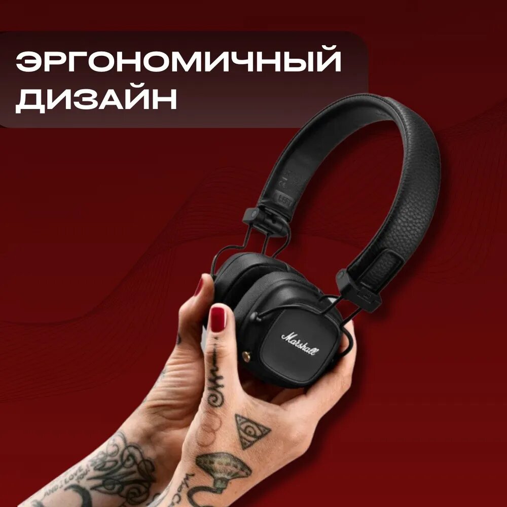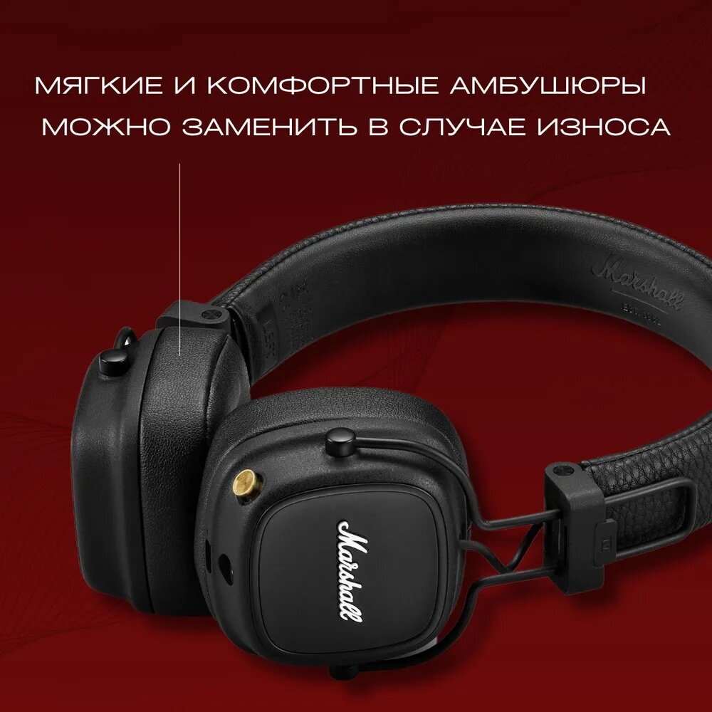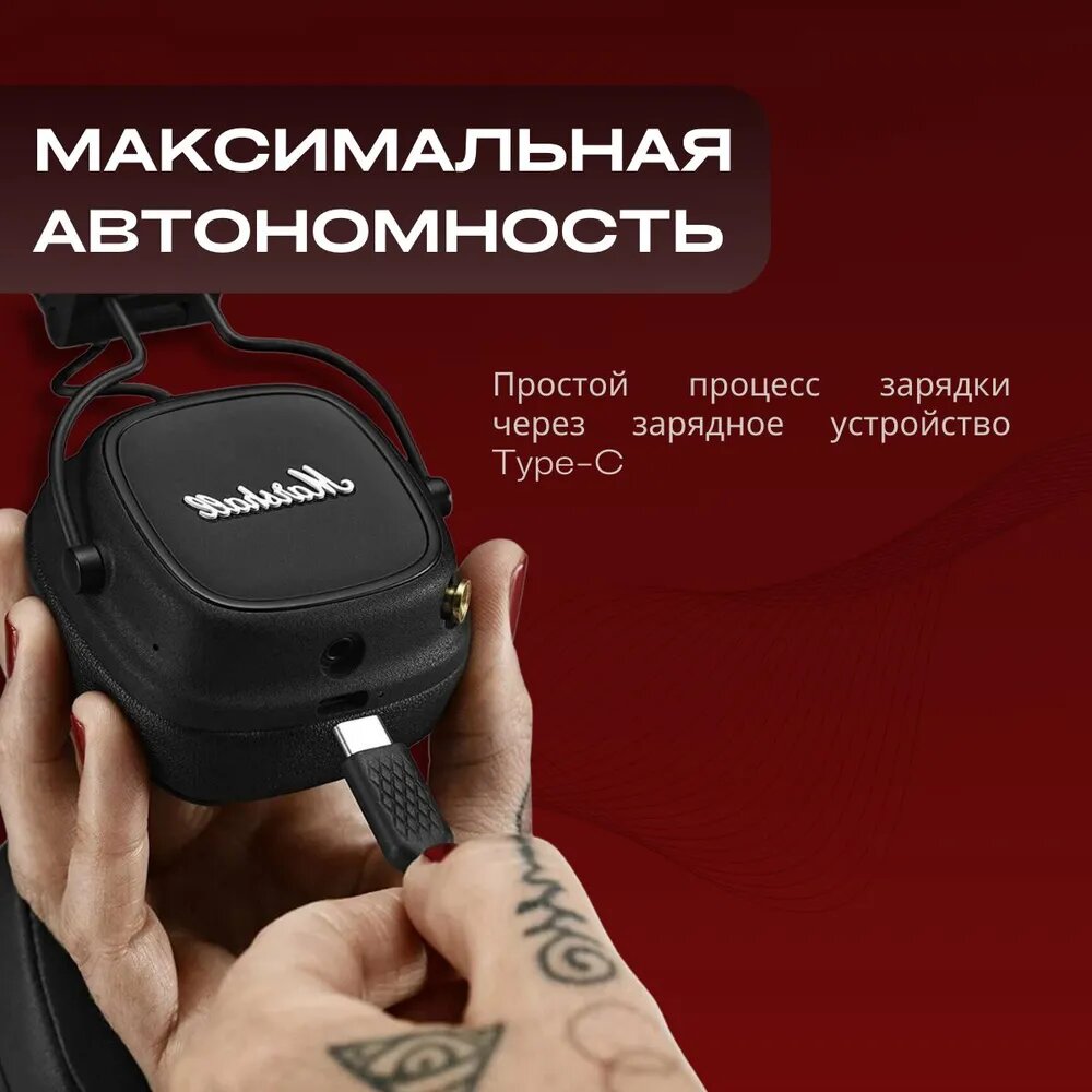 Наушники Marshall Major IV Bluetooth с объемным звуком 80 часов работы