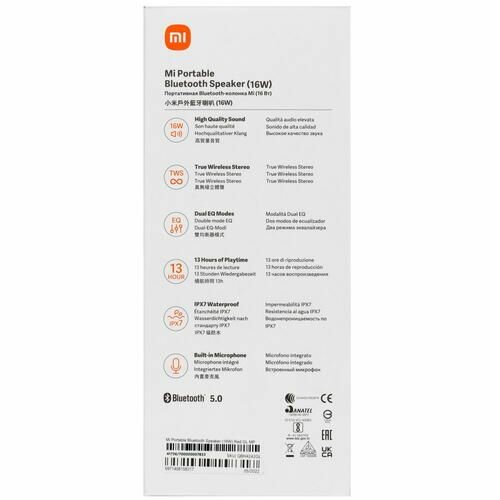 Колонка Mi Portable Bluetooth Speaker (QBH4197GL), 16Вт, BT 5.0, 2600мАч, синяя