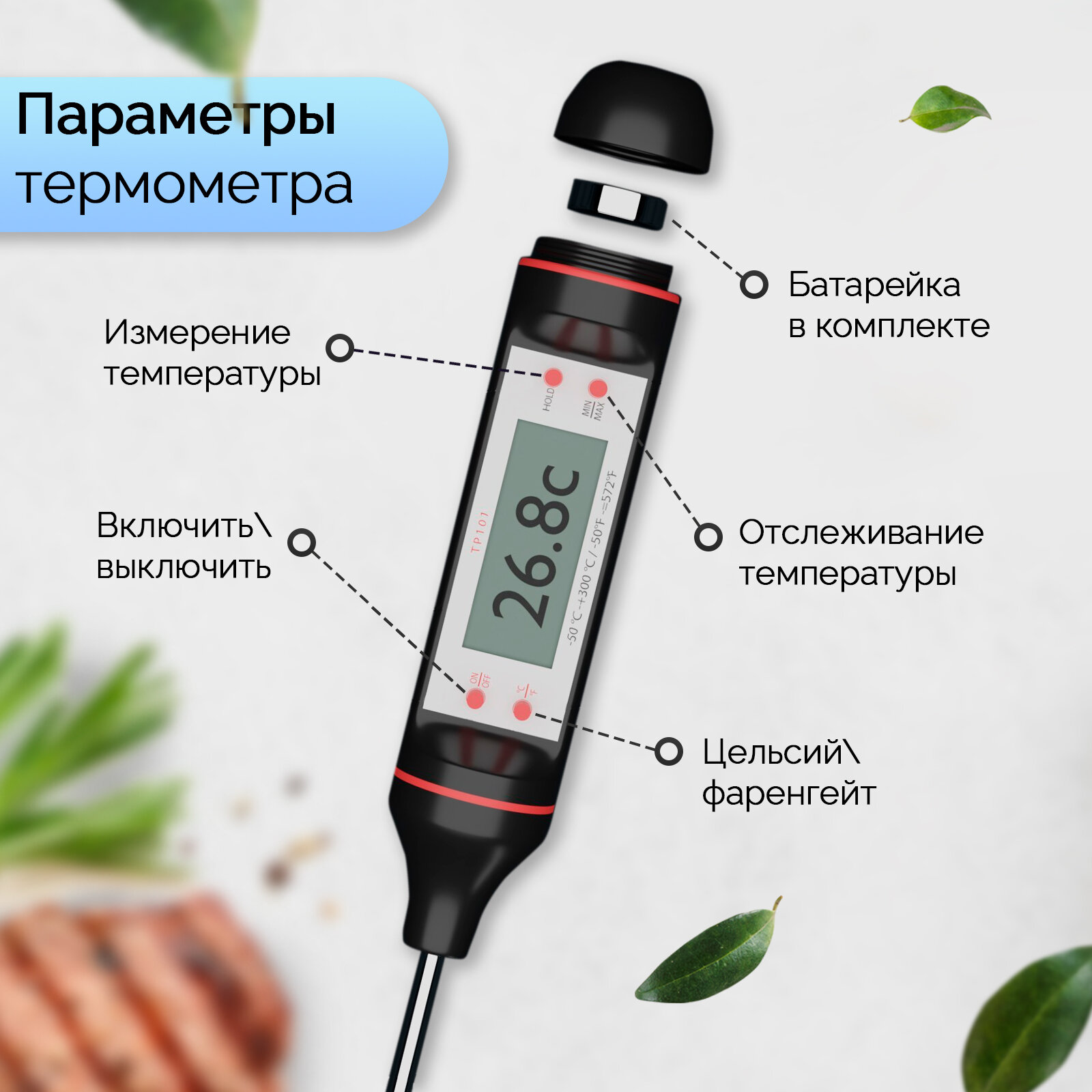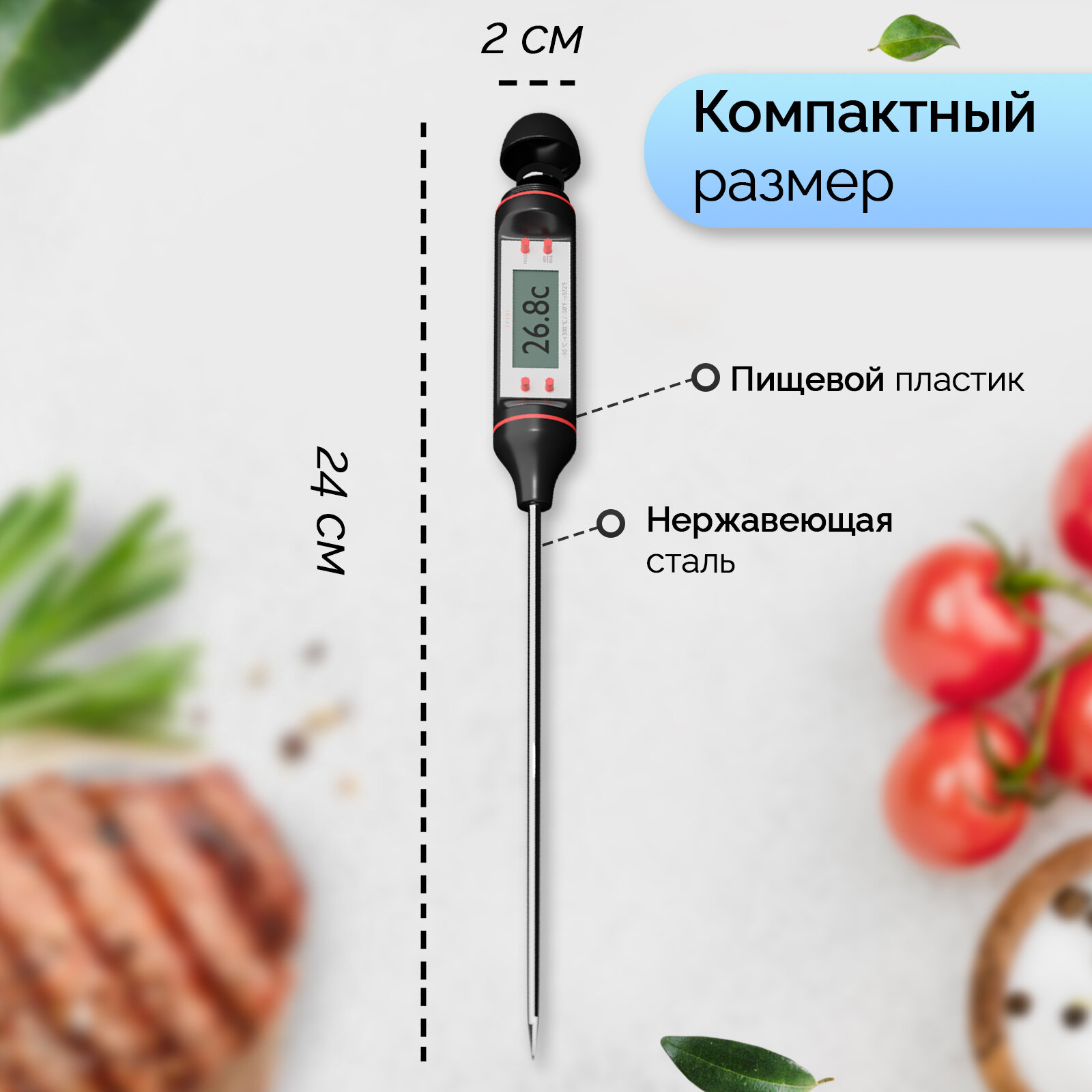 Термометр для пищи электронный на батарейках в коробке