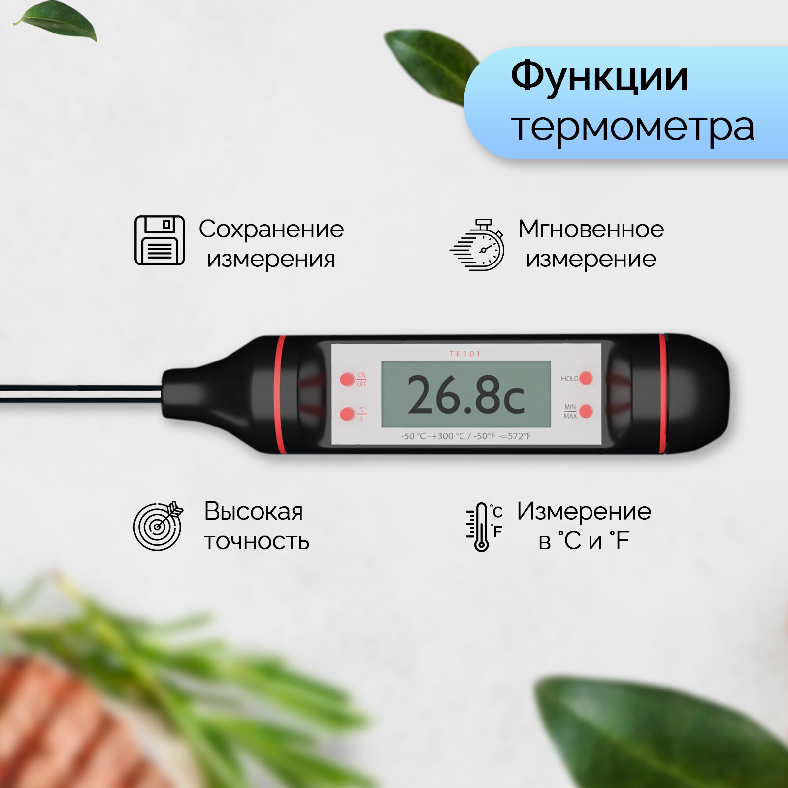 | Плюсы: | Хороший помощник для измерения температуры еды. |