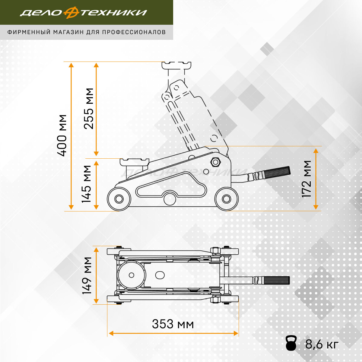 СохранитьДомкрат Дело Техники подкатной 2 тонны, 145—400мм, в кейсе, 904128 интересное: