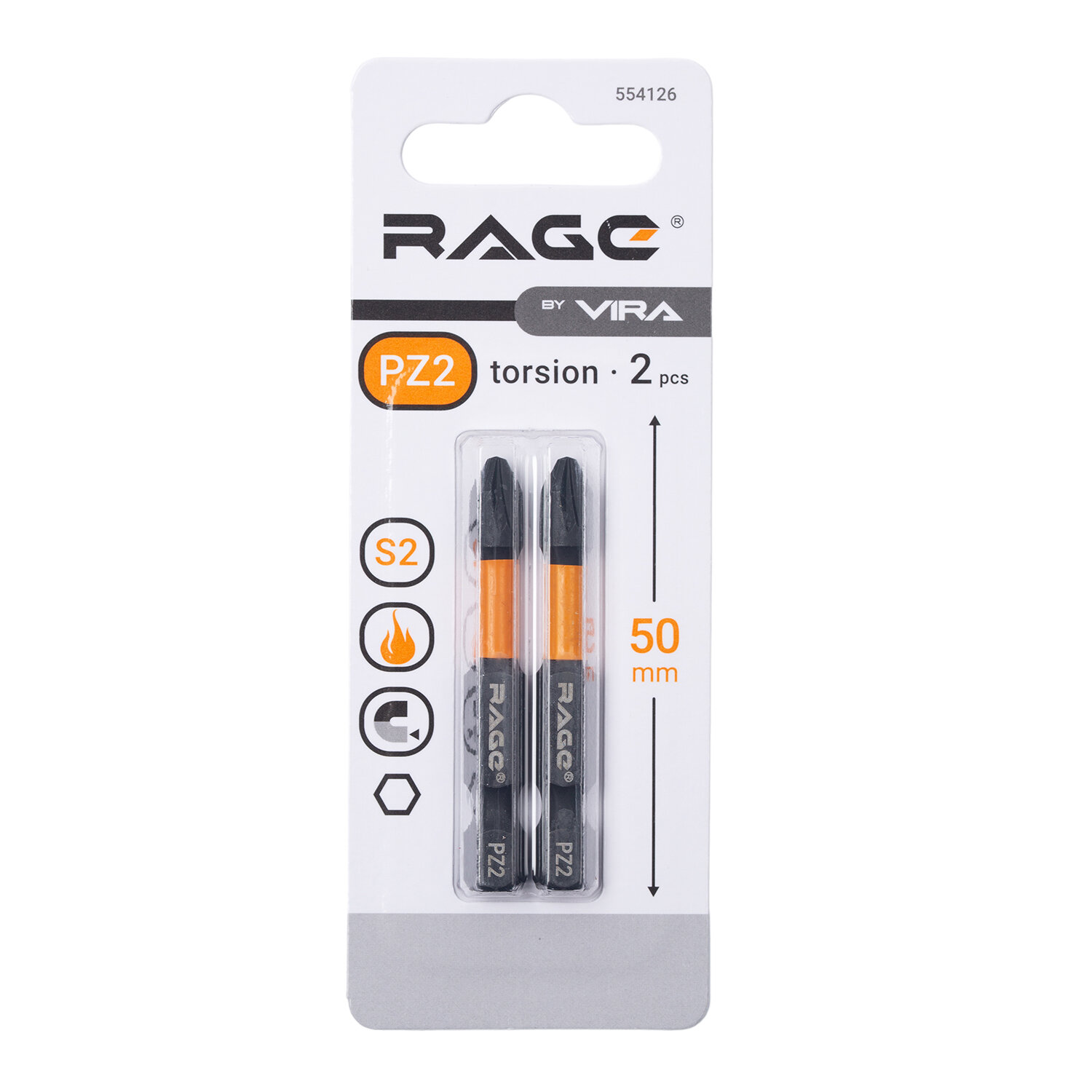 Торсионные биты S2 PZ2x50 мм, 2 шт RAGE by VIRA 554126