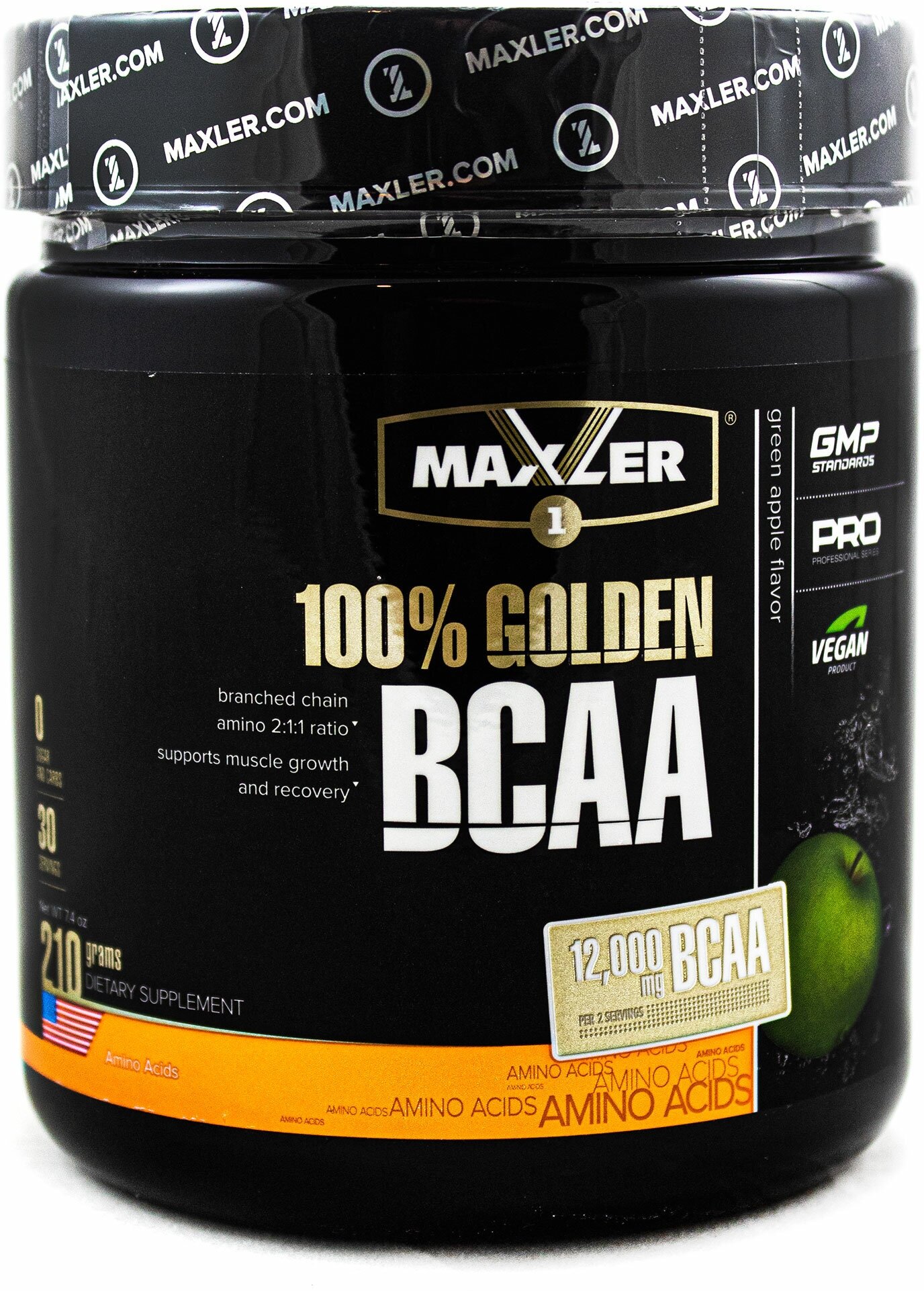 Купить Аминокислоты Maxler 100% Golden BCAA - Зеленое яблоко, 210г, БЦАА в соотношении 2:1:1, В форме порошка - 30 порций