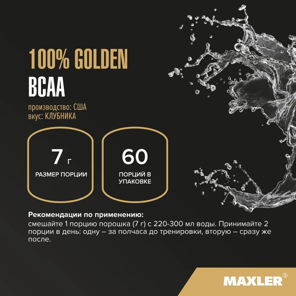 Аминокислоты Maxler 100% Golden BCAA Клубника, 210г, БЦАА в соотношении 2:1:1, В форме порошка, 30 порций