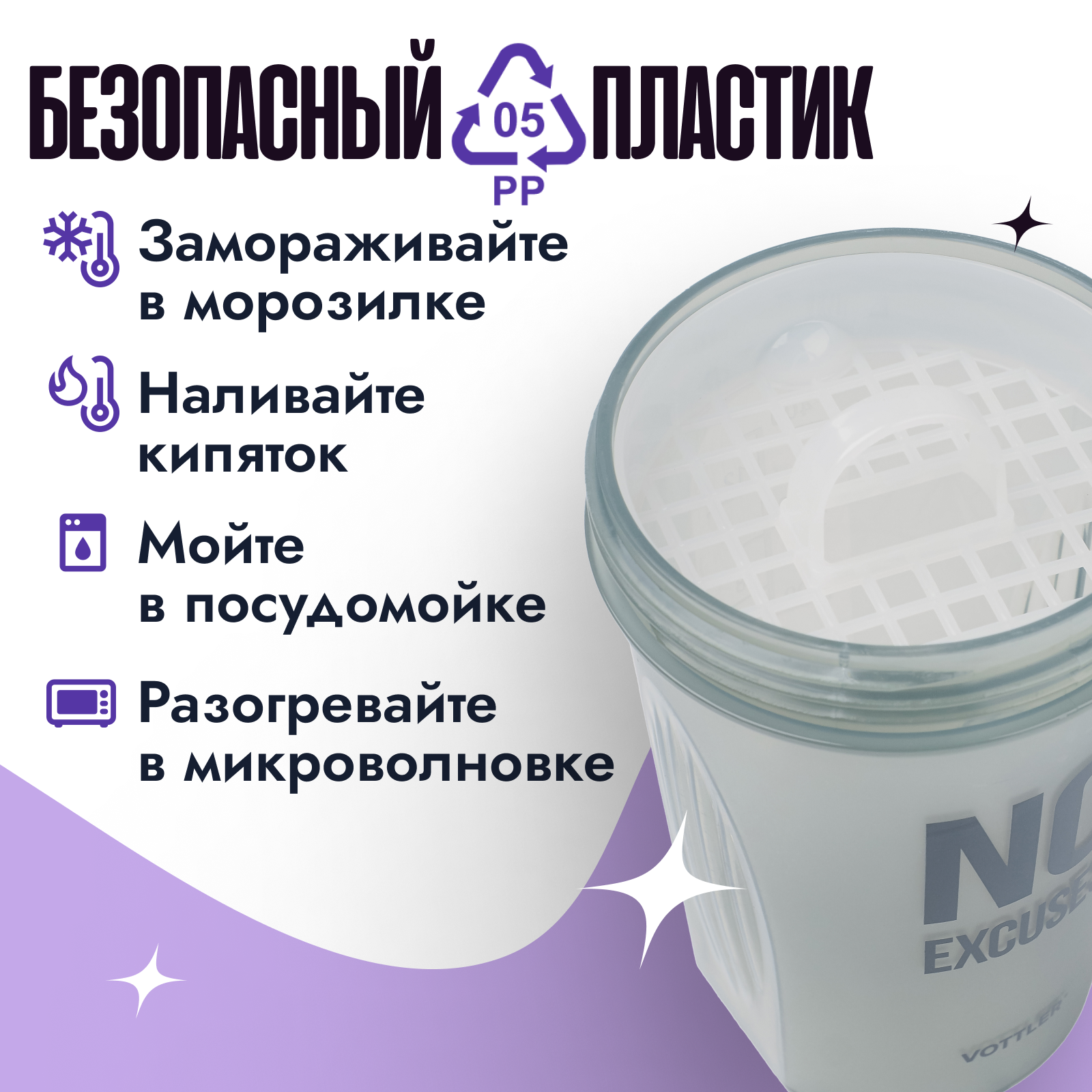 Шейкер VOTTLER 500 мл No excuses с шариком