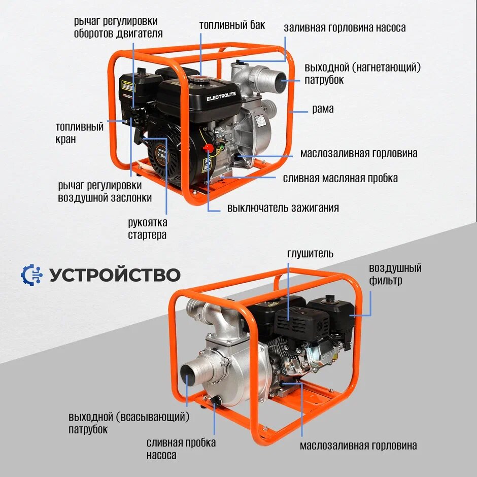 СохранитьМотопомпа бензиновая для откачки воды ELECTROLITE GP-80EL 7 л.с, 1000 л/мин, 80 мм, для среднезагрязненной воды интересное: