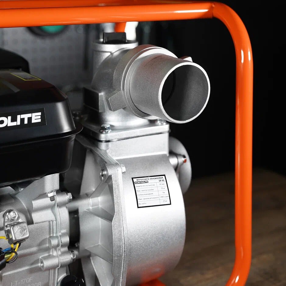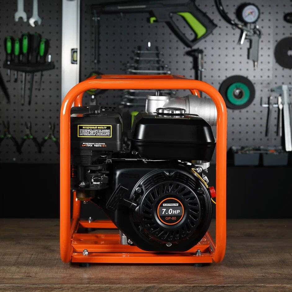 Мотопомпа бензиновая / помпа для прокачки чистой воды ELECTROLITE GP-80 ( 7 л.с, 1000 л/мин, 80 мм, для среднезагрязненной воды )