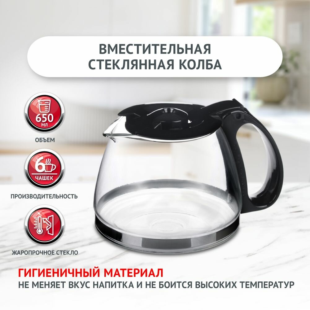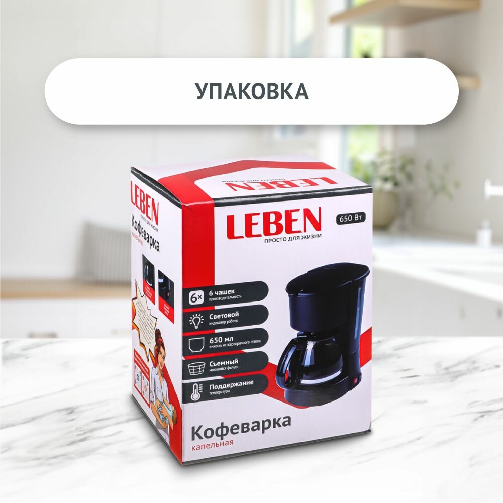 LEBEN Кофеварка капельная 550Вт, стеклянная колба 0,6л