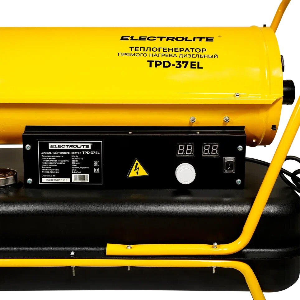 Купить Тепловая пушка дизельная ELECTROLITE TPD-37 (37000 Вт, 750 м3/час, 220 В, 2.8 л/час, Термостат)