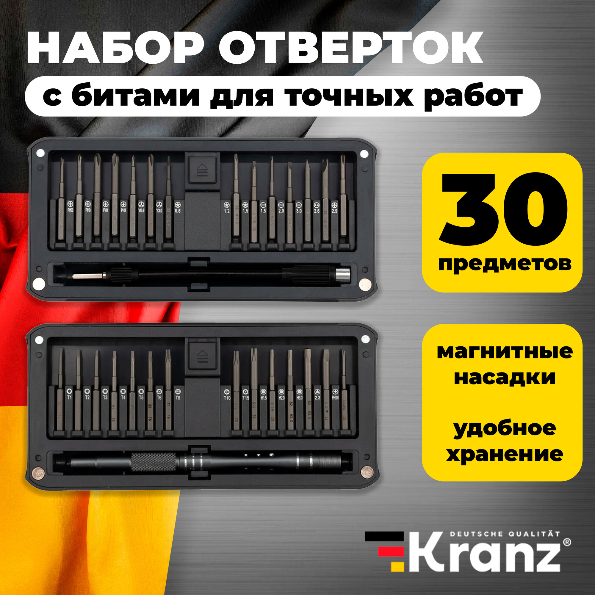 Набор отверток для точных работ RA-02, 30 предметов KRANZ, цена за 1 шт