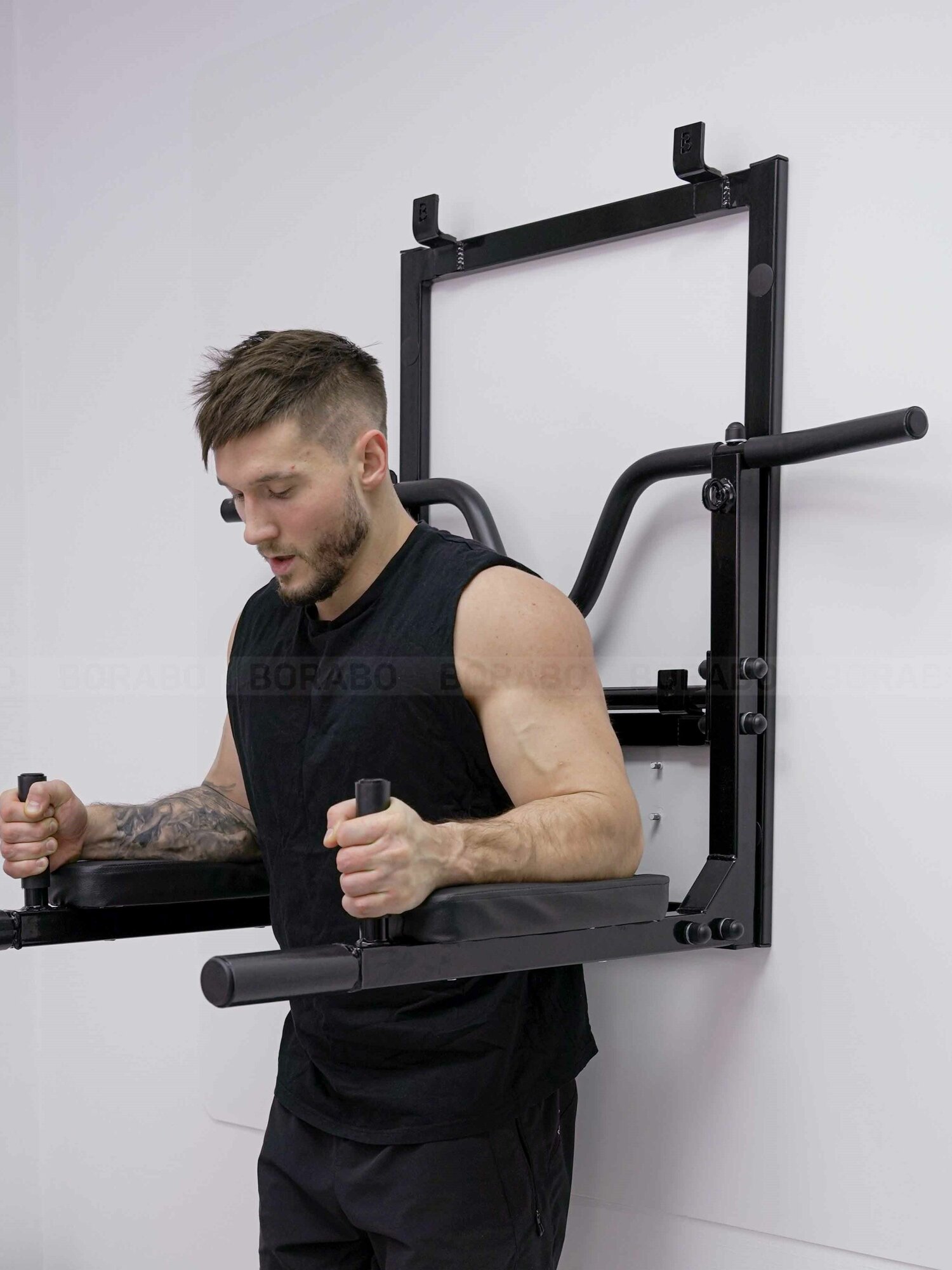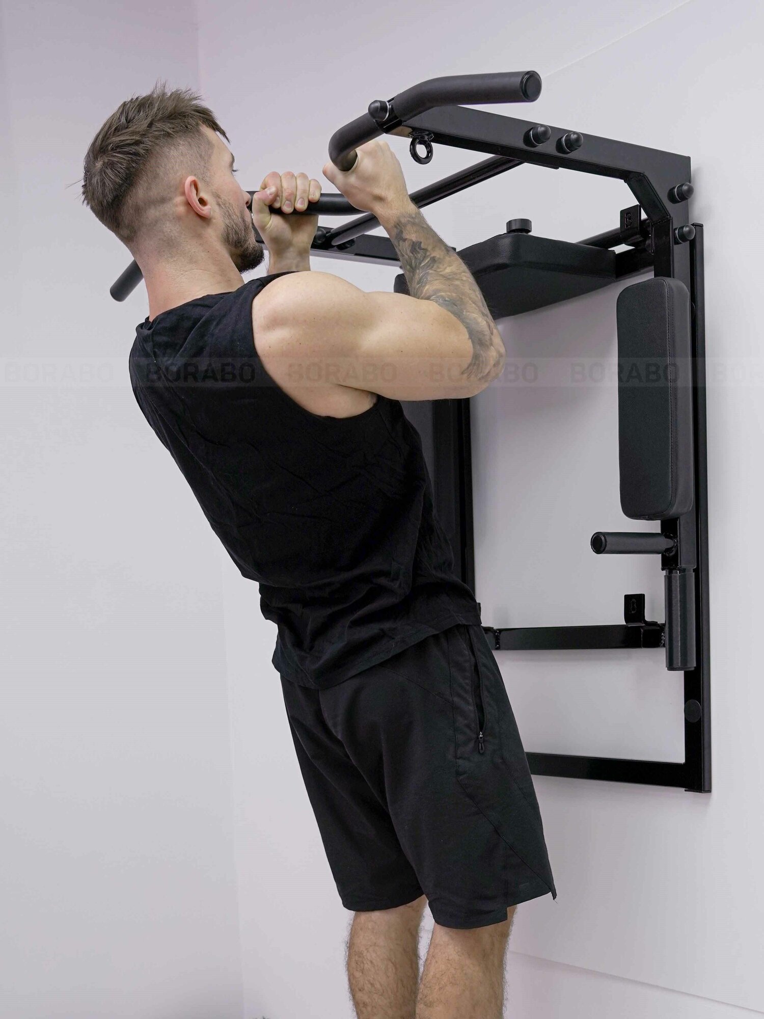 Турник настенный Брусья Пресс 3 в 1 VENOM BLACK на раме, стальное рифление хватов