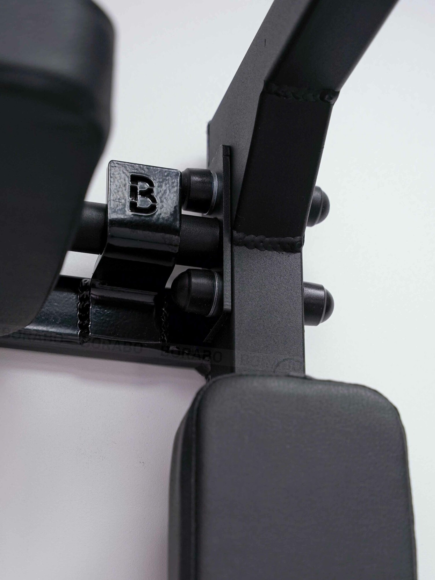 2. Отверстия в раме рассчитаны на стержень металлического анкера без рубашки, что значительно усложняет установку, т.к. все анкера нужно раскрутить, потом вставить в отверстия, прикрутить на рубашки, и потом все 6 попасть в отверстия в стене, одному почти нереально. 3. Подушка мешает установить в верхнем положении если её посадить чуть глубже на крепление, приходится подгонять. 4. Болты для крепления подлокотников в верхнем положении турника упираются головками в раму и царапают её. |