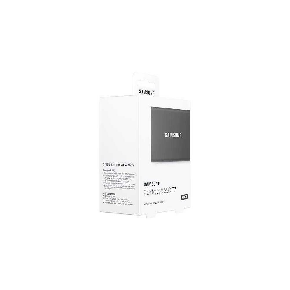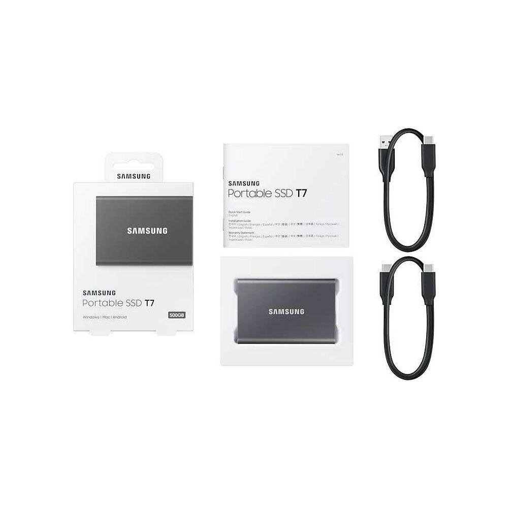 SSD диск PCI-E внешний / Samsung T7 Portable 500gb, серый / 1050/1000mbs / USB 3.2 Gen 2 Type-C / MU-PC500T/WW