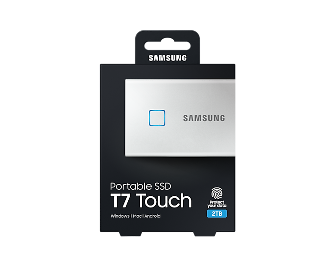 Внешний SSD Samsung T7 Touch 2 ТБ, USB 3.2 Gen 2 Type-C, серебристый (MU-PC2T0S)