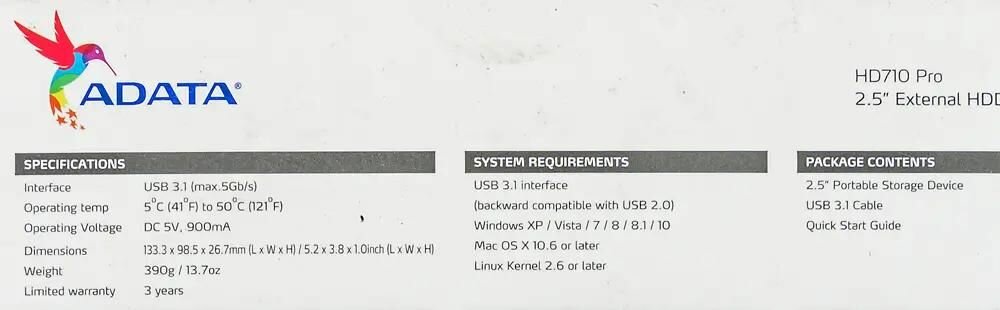 ADATA AHD710P-2TU31-CBL, Внешний жесткий диск
