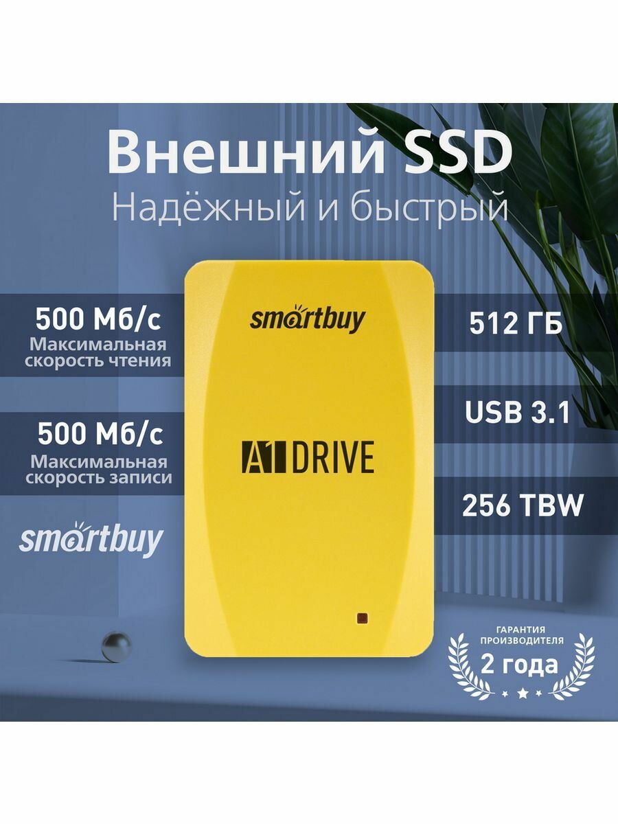 Внешний SSD Smartbuy A1 Drive 512GB USB 3.1, желтый