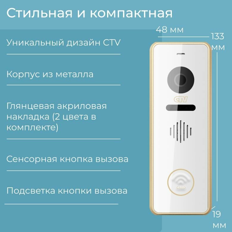 Купить CTV-D4002EM (Шампань) Сенсорная вызывная панель видеодомофона, камера 2Mp FULL HD, 115 градусов, Встроенный контроллер-считыватель, ИК-подсветка, БУЗ в комплекте, Антивандальная, -30...+50С