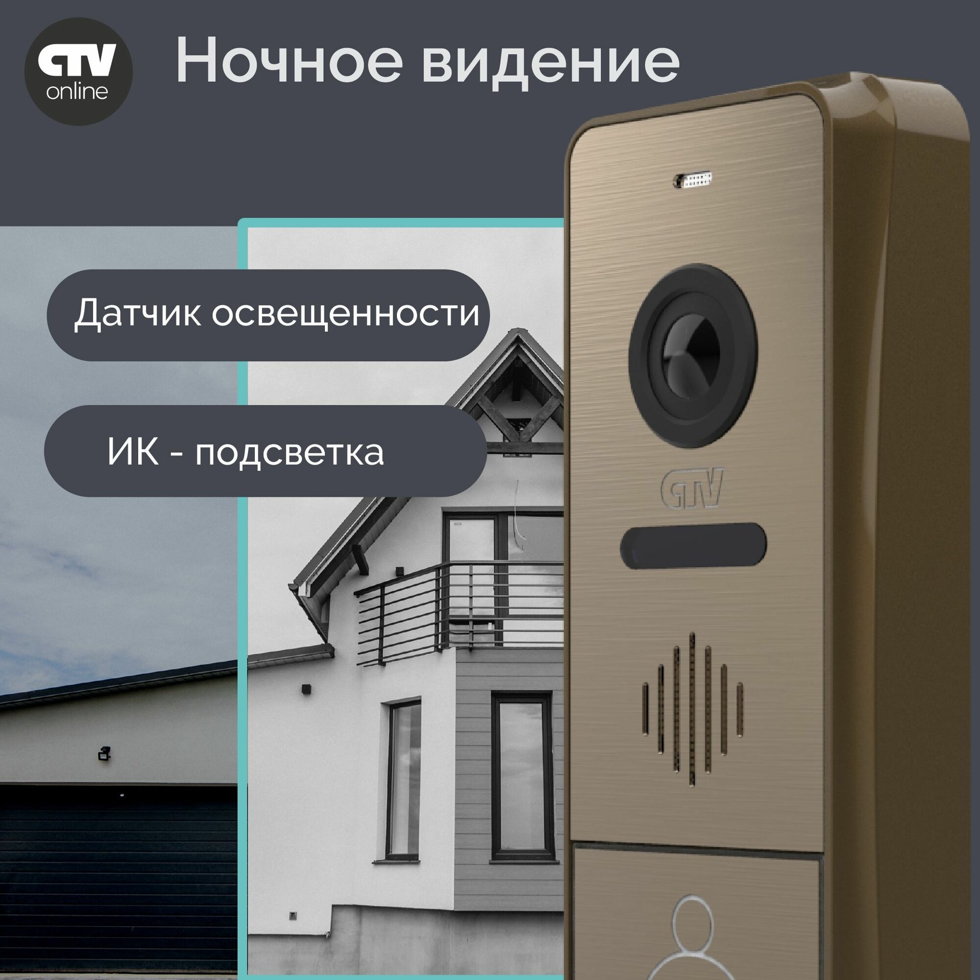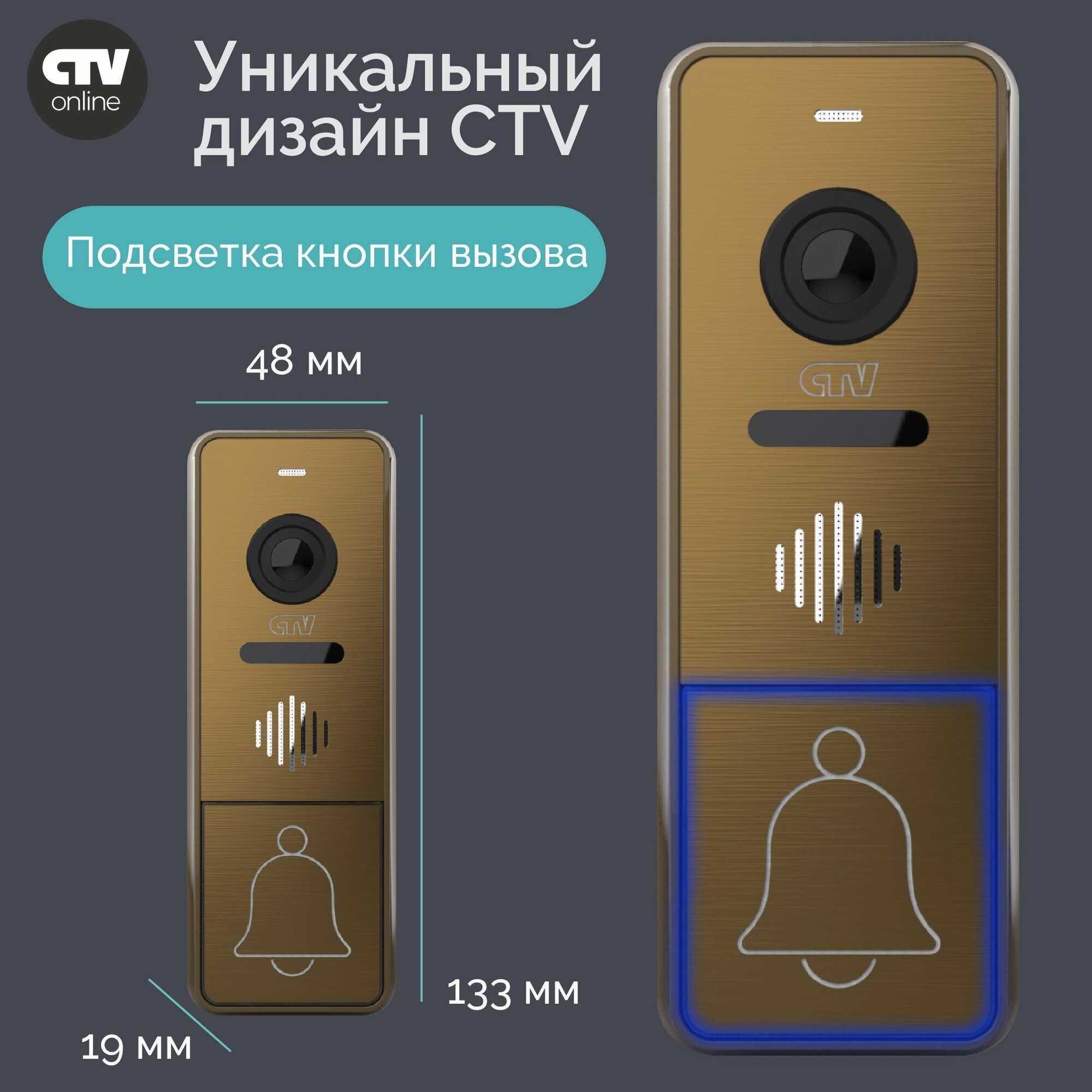 СохранитьВызывная панель видеодомофона CTV-D4005 (Бронза), Видеокамера 2Mp FULL HD, обзор 115 градусов. ИК-подсветка. Антивандальный корпус, -30...+50С интересное: