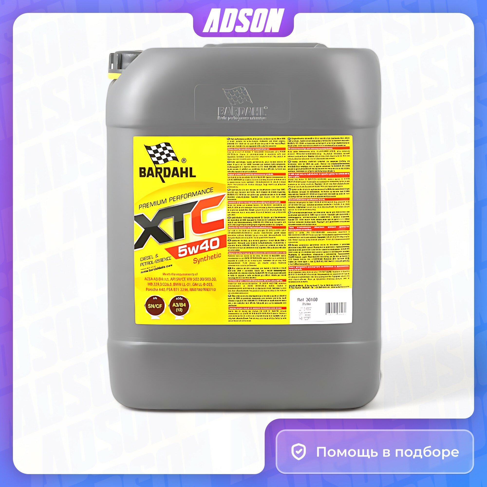СохранитьМоторное масло xtc 5w40 син. (20л) Bardahl 36168 интересное: