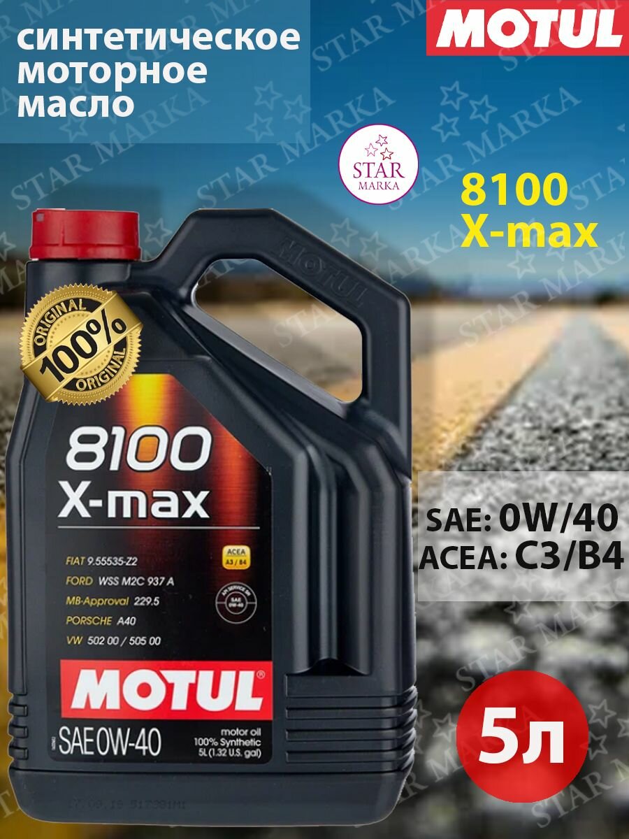 MOTUL 104533 MOTUL 0W40 8100 X-max 5L ACEA A3/B4,BMW LL-01, MB 229.5, VW 502-505 (французская республика)
