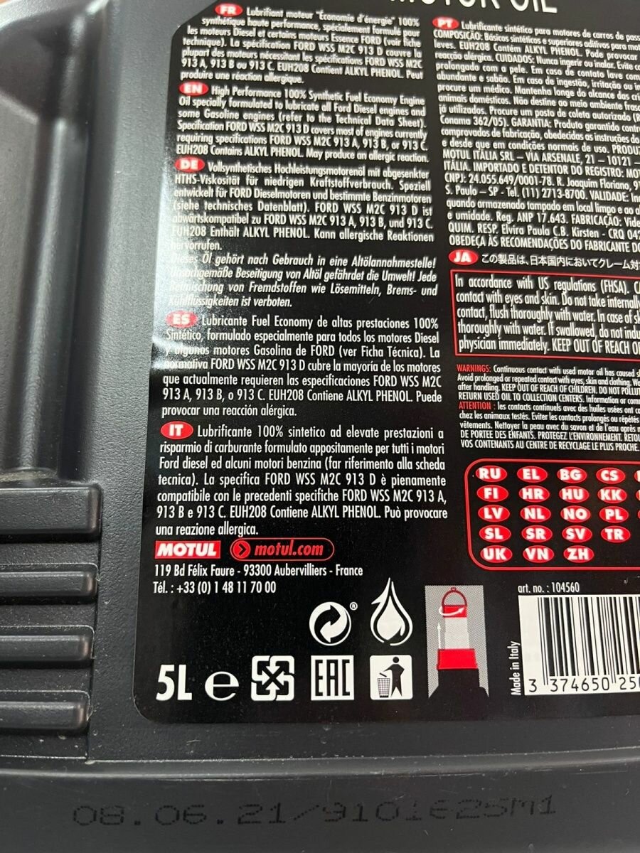 MOTUL Масло Моторное Motul Specific 913C/D Ford 5W-30 Синтетическое 5 Л 104560