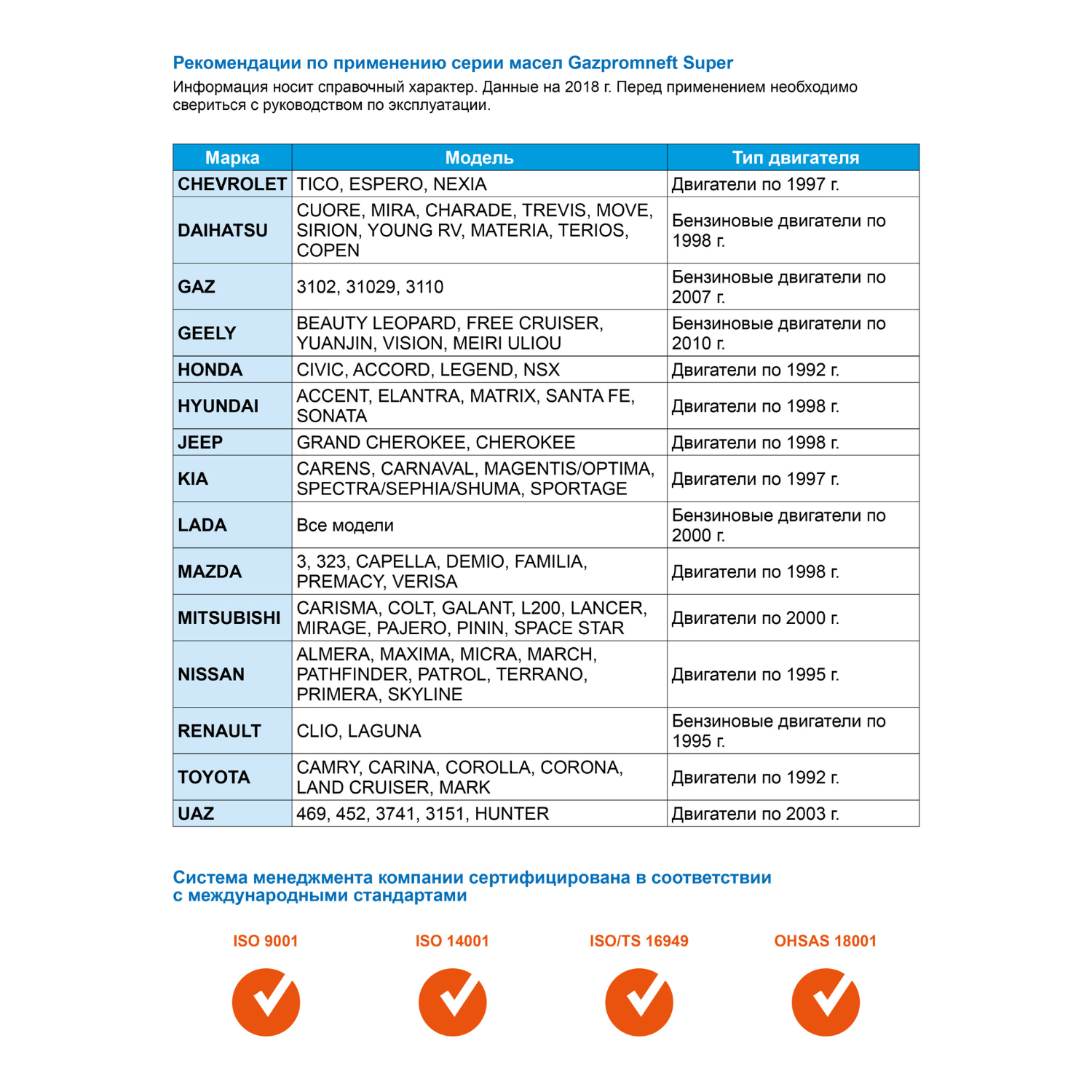 Ниже Вы можете прочитать отзывы на Gazpromneft Super 5W-40, ознакомится с подробными характеристиками, посмотреть интересные обзоры и фотографии на Gazpromneft Super 5W-40.
