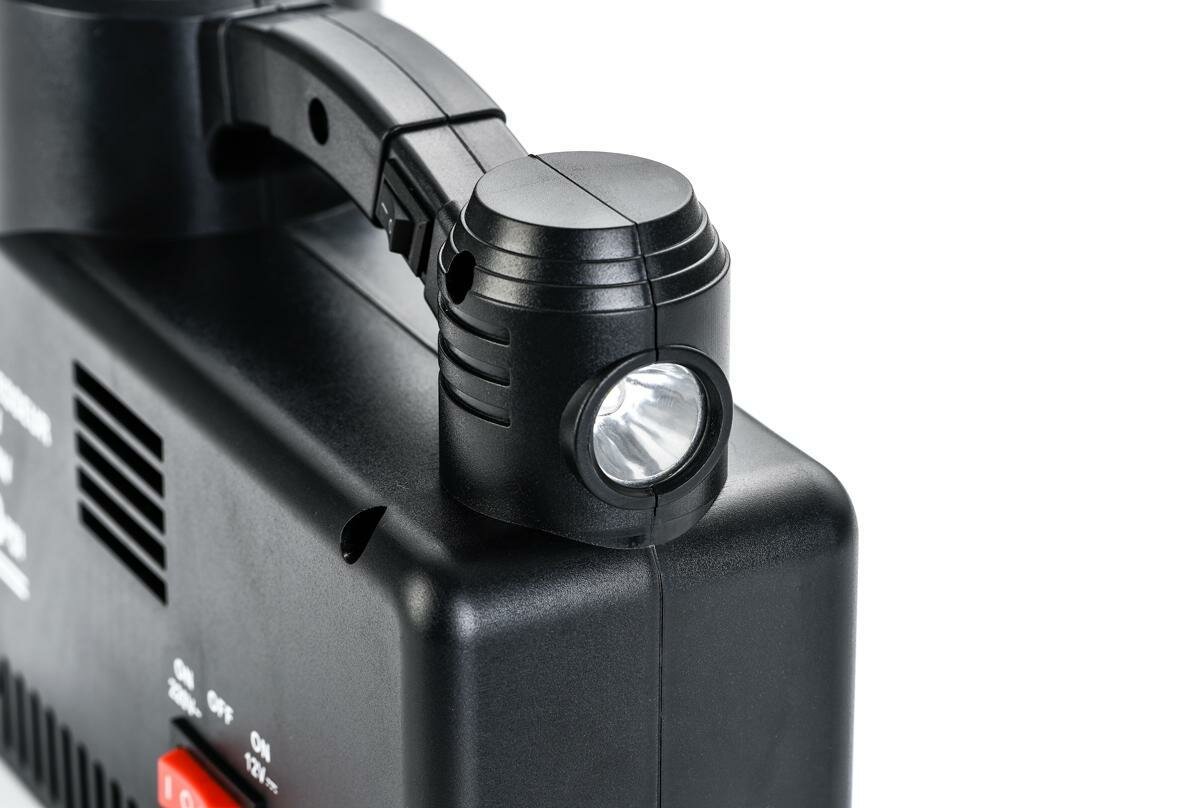 | Минусы: | Встроенный фонарик работает только при включённом компрессоре( опробовал при подключении 220v, фонарик включился когда насос затарахтел. Сначала даже подумал что не работает совсем))) ). Кабель коротковат, но для дома не критично. Хотелось бы, чтобы было автоотключение, но это уже будет другая цена.