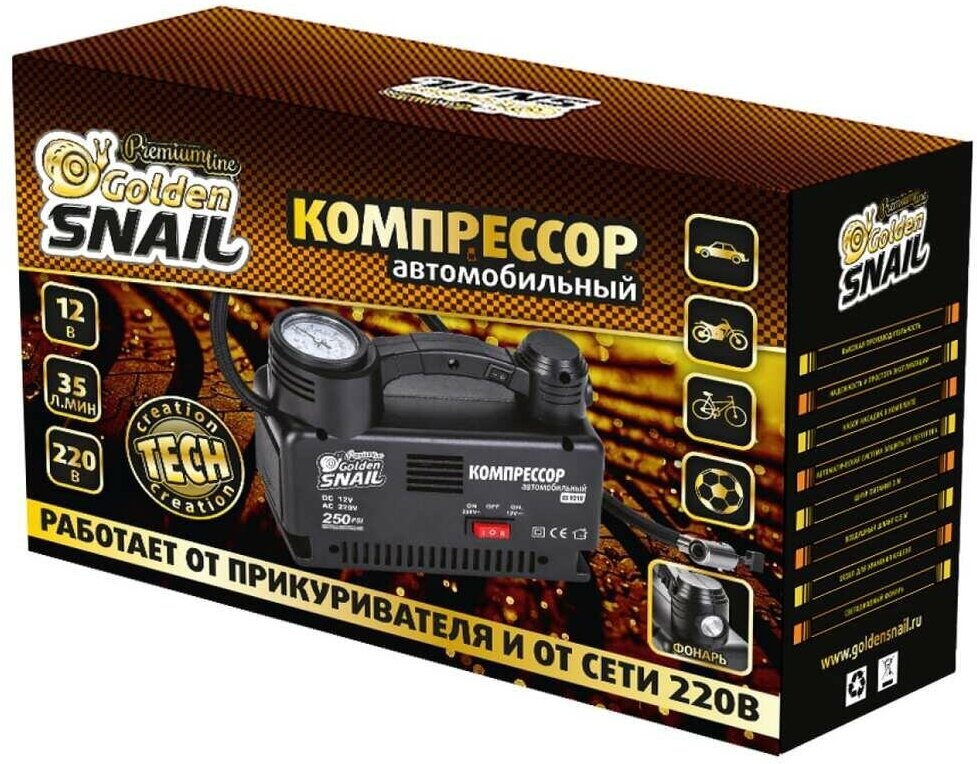 Golden Snail Компрессор автомобильный, с фонариком