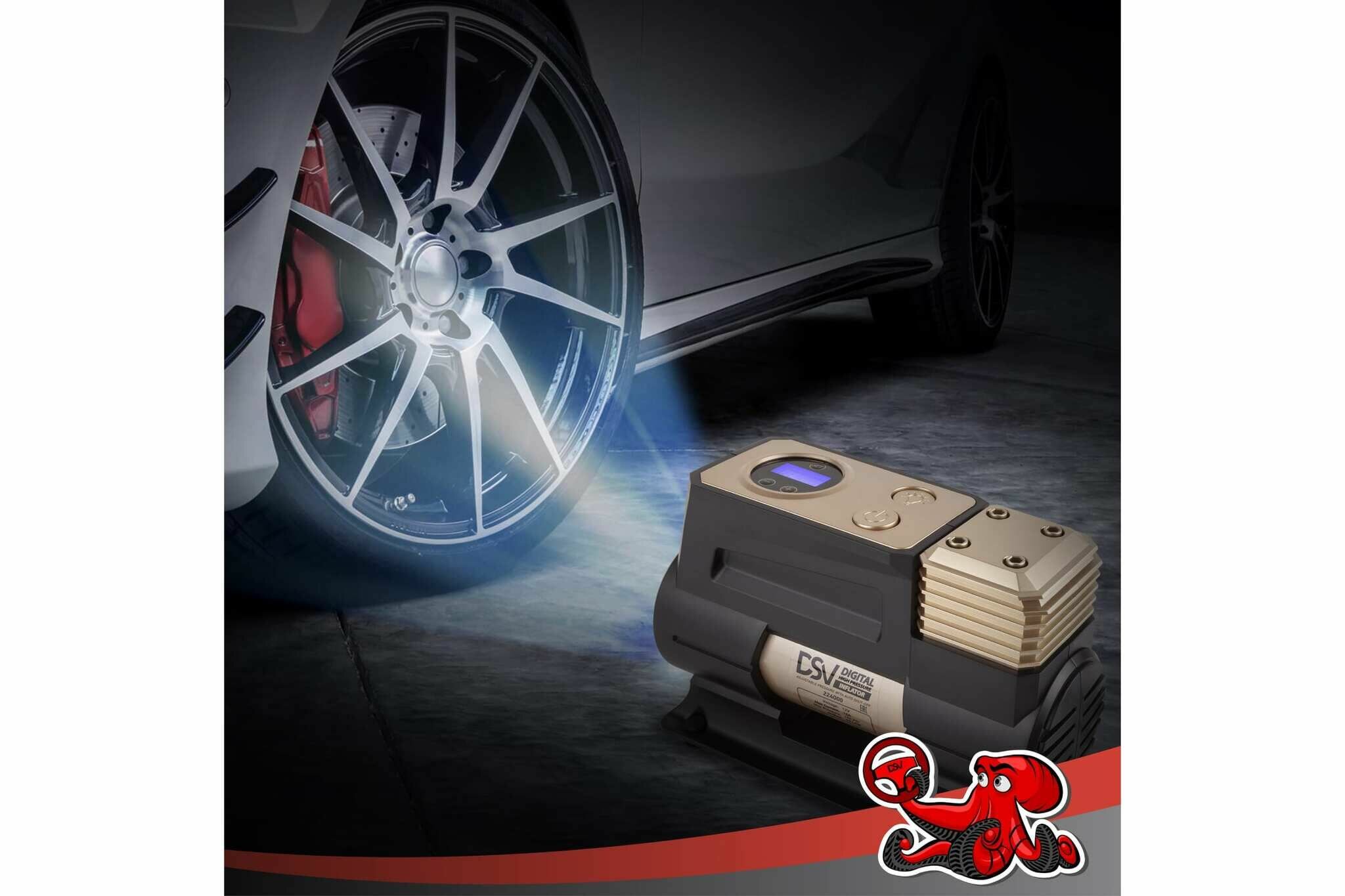 DSV 224000 Компрессор "DSV" Smart, усиленный с LED фонарем 45 л/мин 12В с цифр. маном, сумкой, золотой