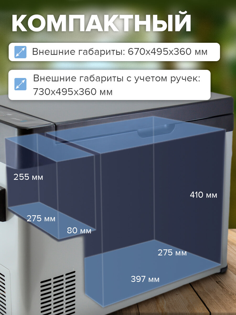 | Отзыв: | Радует в нем то, что охлаждает и держит температуру в полном объёме. В него можно запихнуть все и даже больше. Работает тихо. Я бы не сказал, что он компактный, но для меня это плюс. Для путешествий с семьёй на автомобиле самое то |