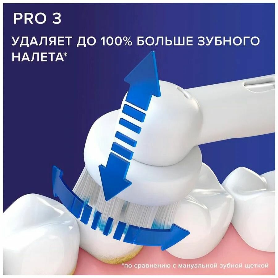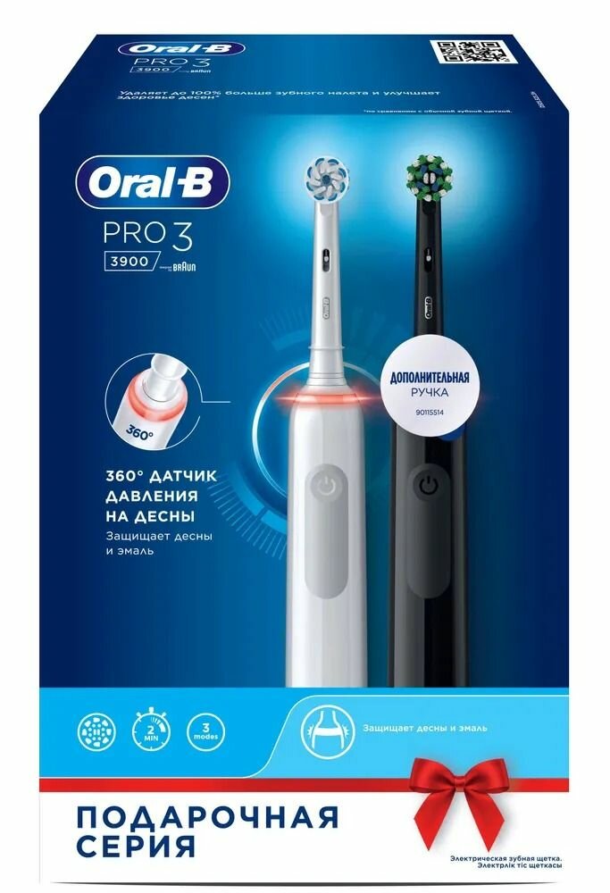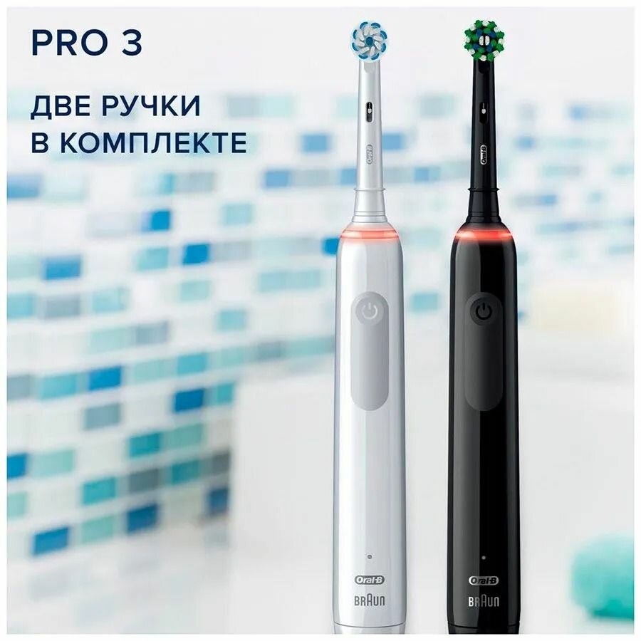 Набор электрических зубных щеток Oral-B Pro 3 3900 Duo, 2 щетки с визуальным датчиком давления, 2 насадки, черная и белая интересное: