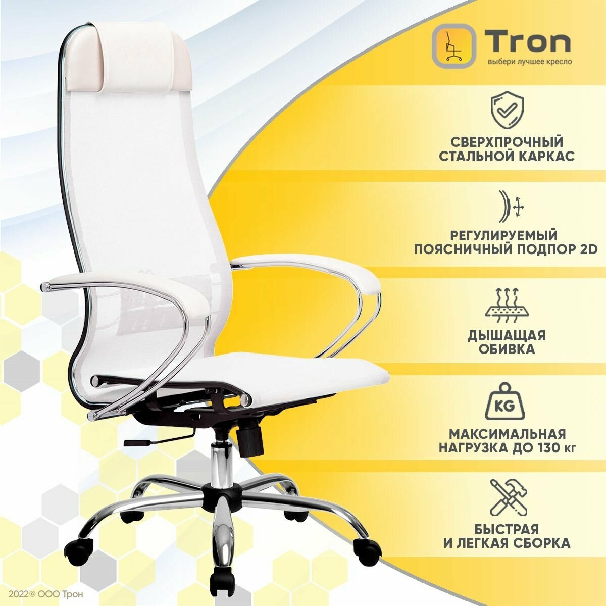 Кресло руководителя Метта Комплект 4, CH, сетка белая/белая, топ-ган (101/003, 131/003)