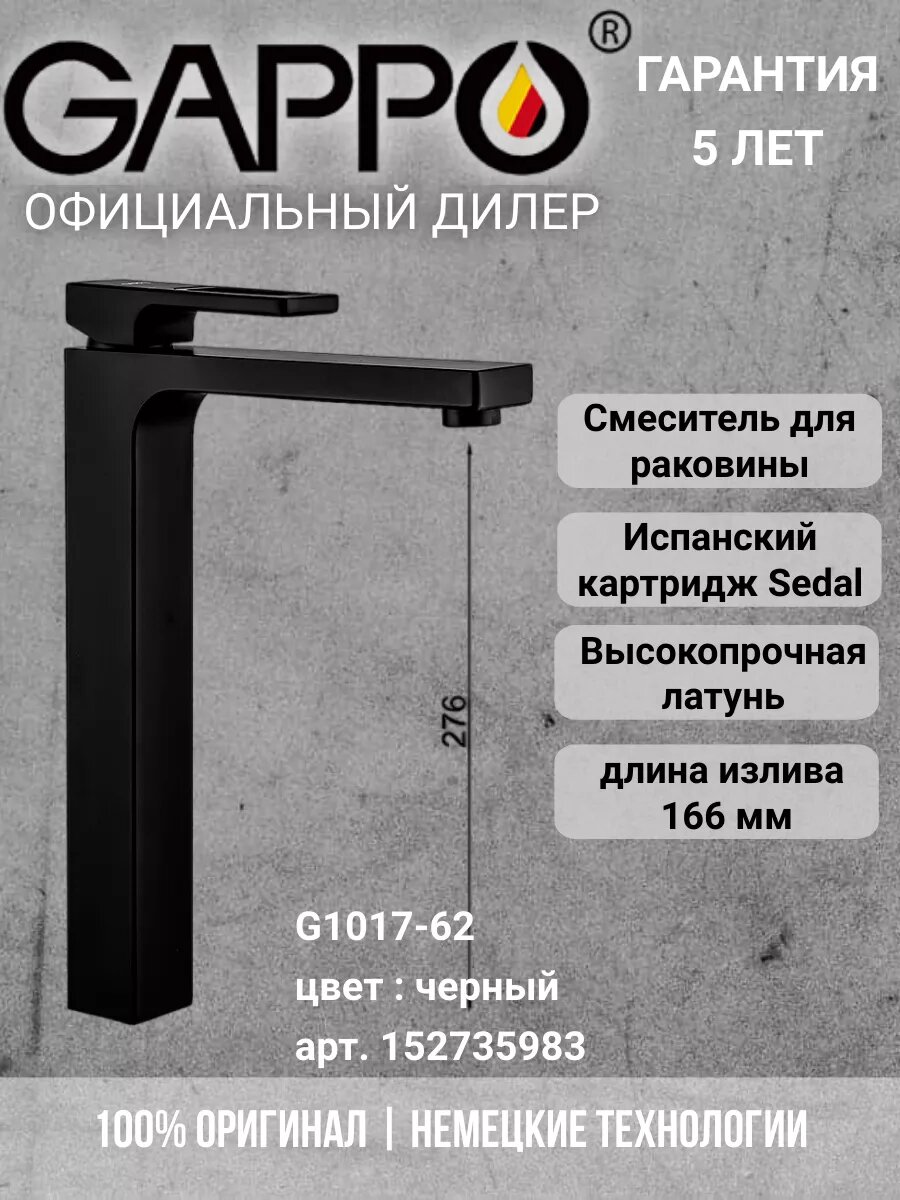 G1017-62 Смеситель для умывальника Gappo высокий, черный