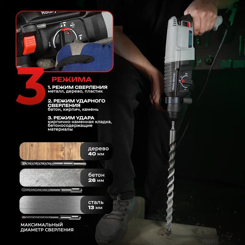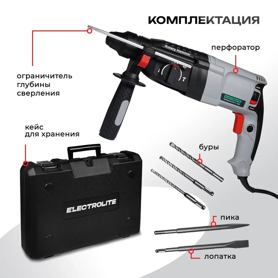 Перфоратор электрический / Перфоратор SDS-PLUS / Перфоратор ELECTROLITE П 1050 ( 1050 Вт, 4 Дж, 3 режима, SDS +, кейс, набор буров )