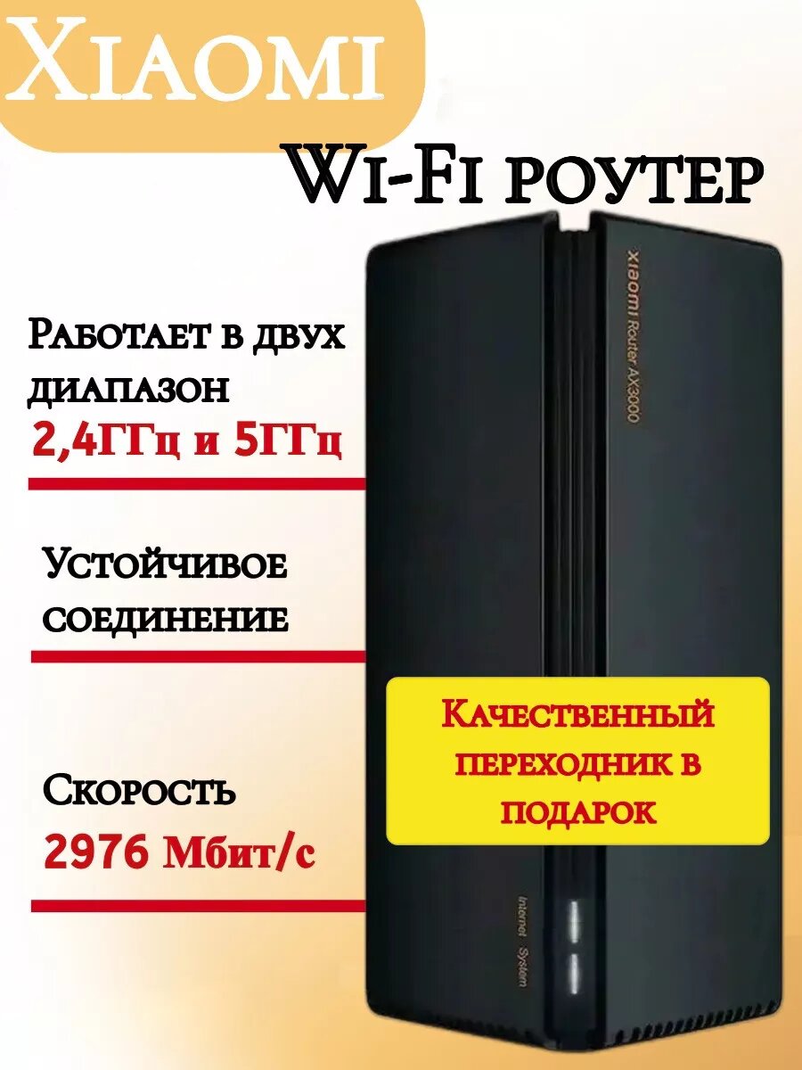 Роутер Wi-Fi Xiaomi AX3000, двухдиапазонная работа, 3 LAN-порта, 2976 Mbps, чёрный