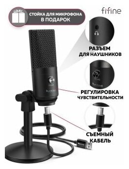 Проводной микрофон Fifine K670, конденсаторный, настольный, USB, черный