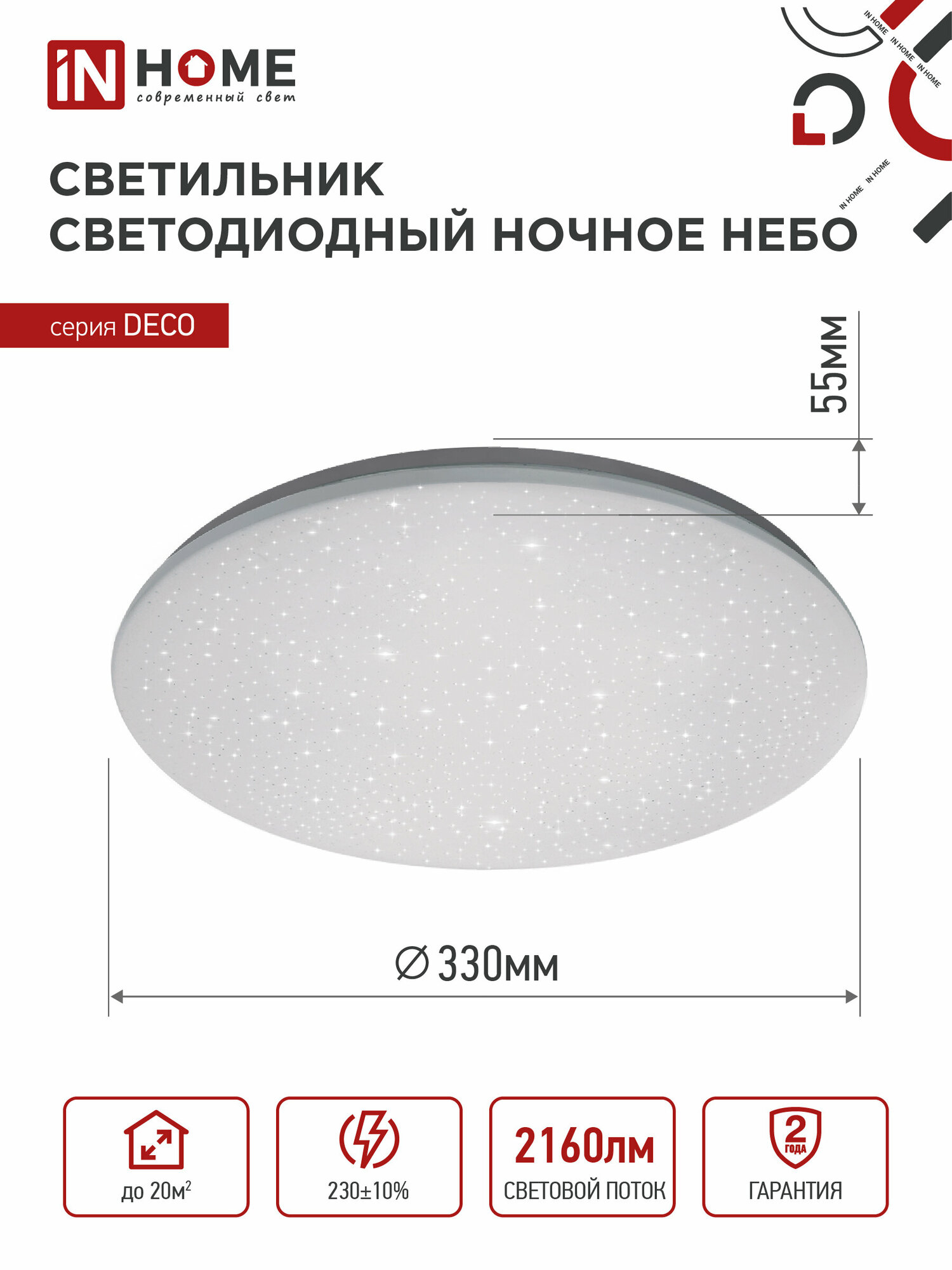 Светильник светодиодный DECO 36Вт 230В 6500К 2340лм 350х55мм ночное небо IN HOME 4690612033570 ( 1шт. )