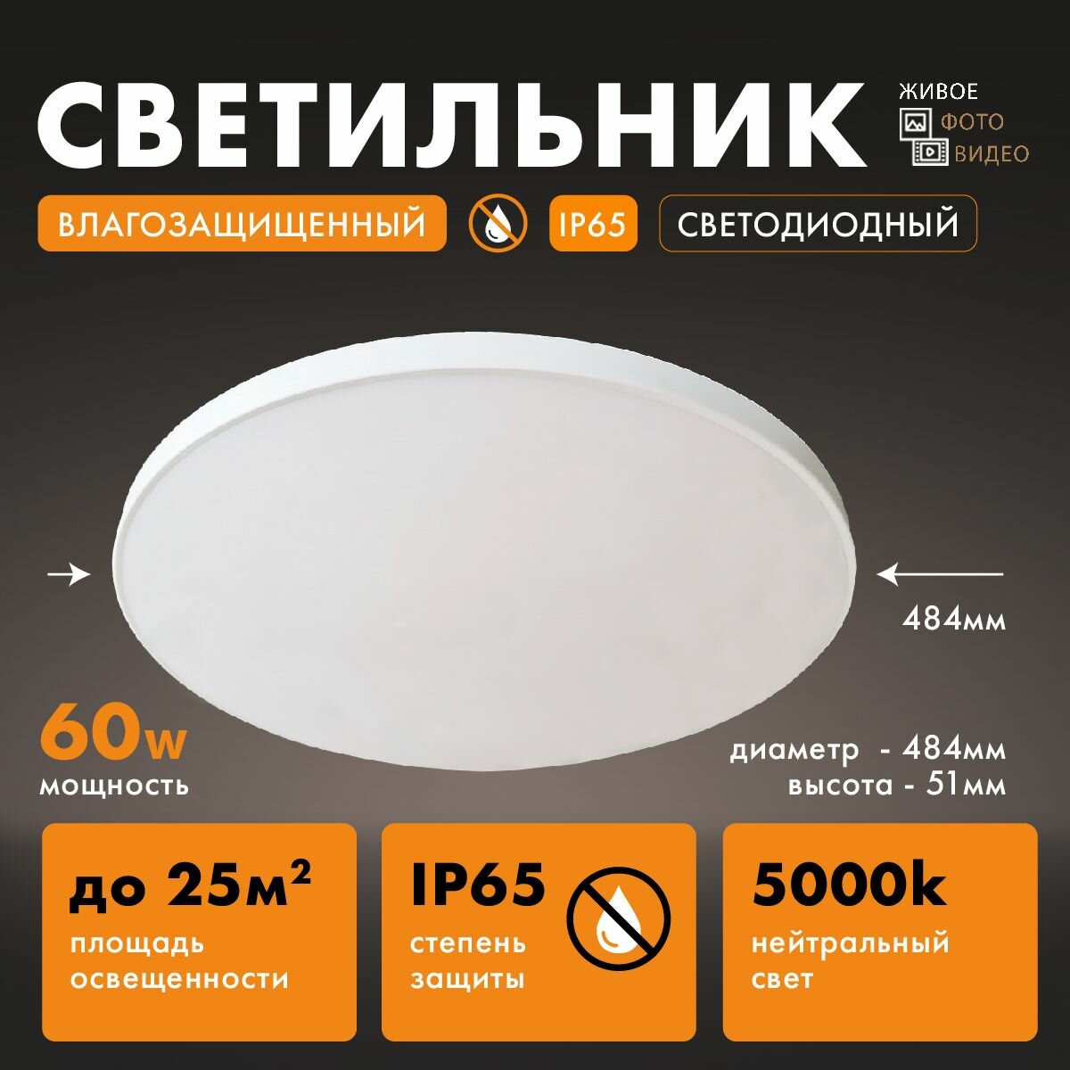 Купить Влагозащитный светильник светодиодный накладной белый LE LED BL IP65 60ВТ 5000K, для ванной комнаты
