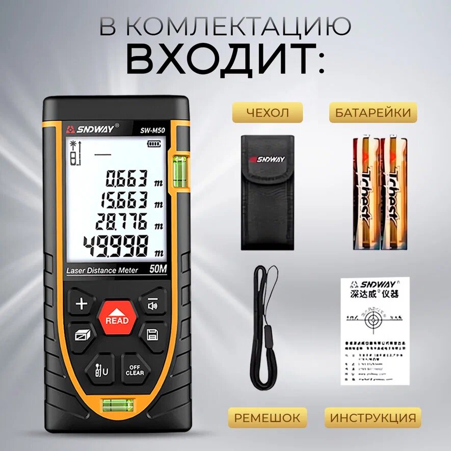 Дальномер SNDWAY SW-M50 (лазерная рулетка 50м) интересное: