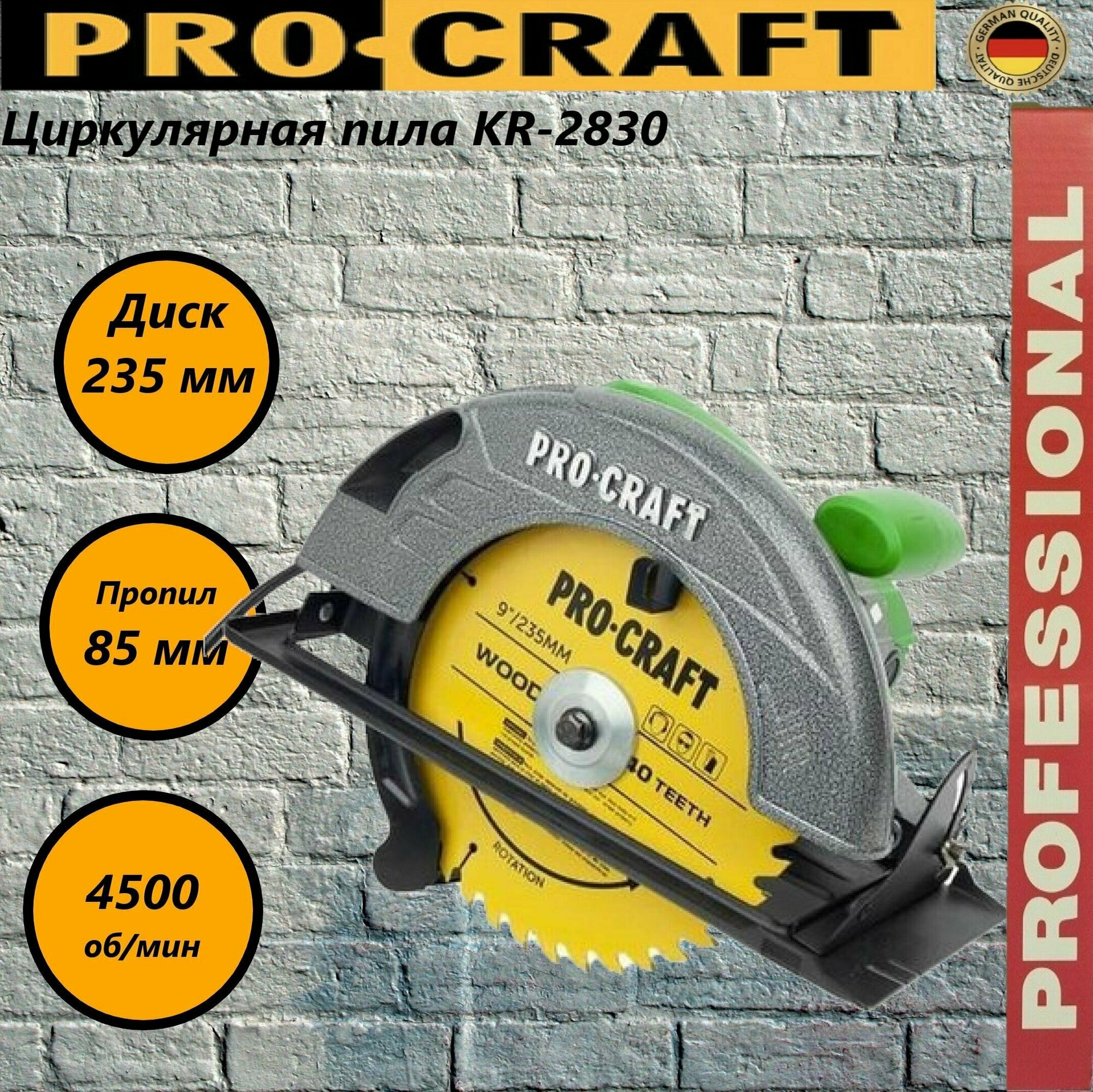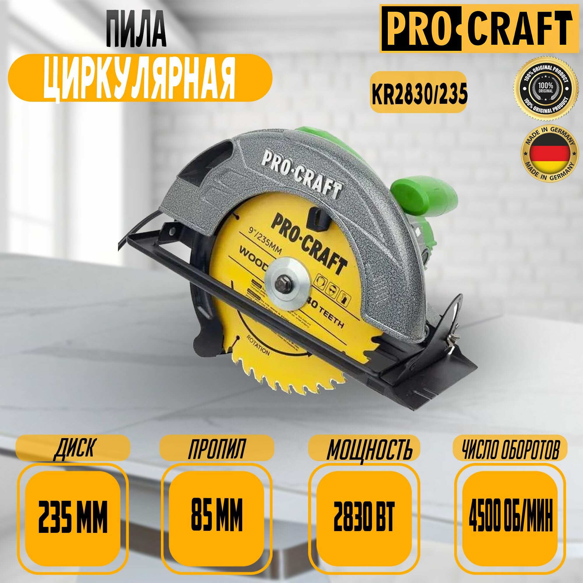 Циркулярная дисковая пила ProCraft KR2830 диск 235мм, пропил 85мм, 4500об/мин, 2830Вт