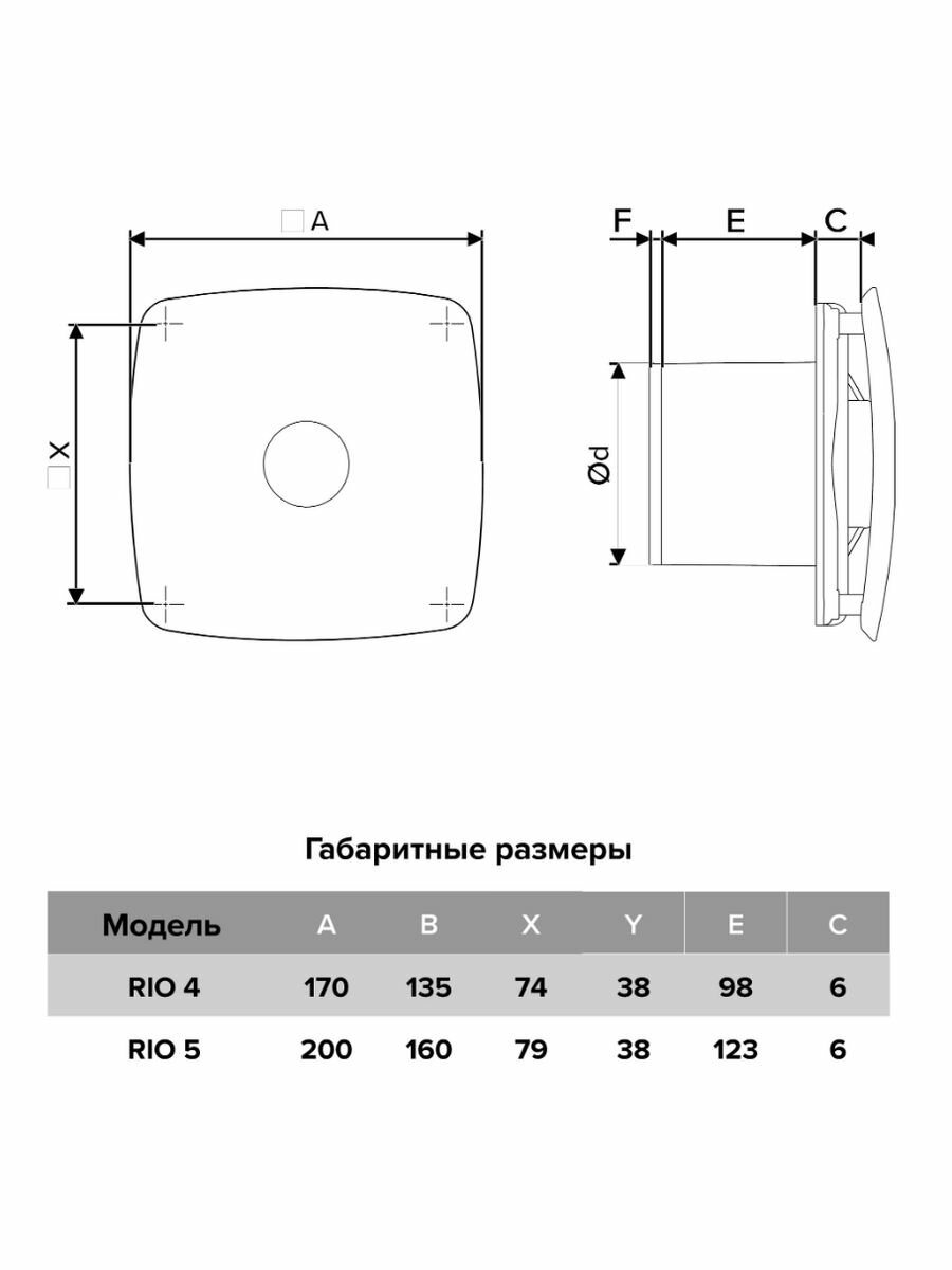 Вытяжной вентилятор 100 с обратным клапаном RIO 4C Obsidian