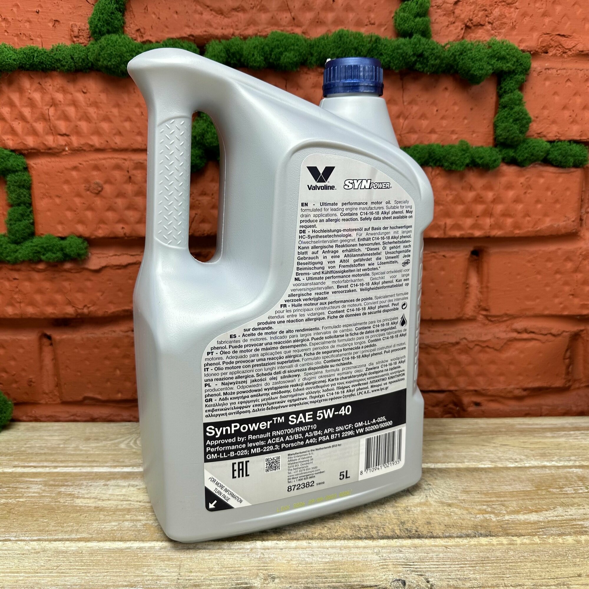 Купить VALVOLINE 872382 VAL SYNPOWER 5W40 (5л) масло моторное
