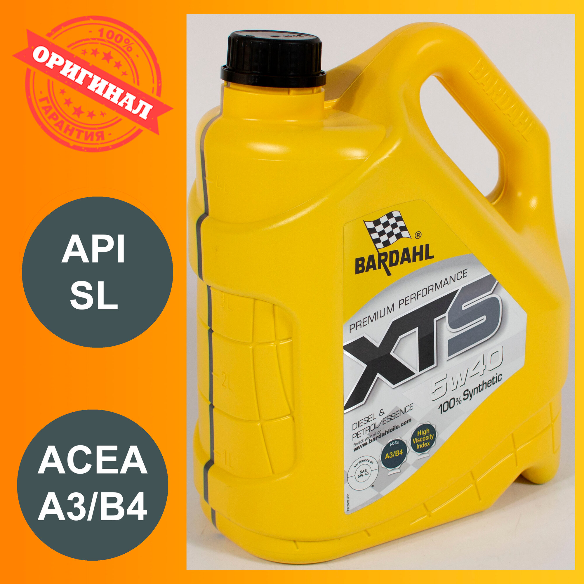 Масло моторное Bardahl XTS 5w40 синтетическое, API SN/CF, ACEA A3/B4, универсальное, 5л, арт. 36893