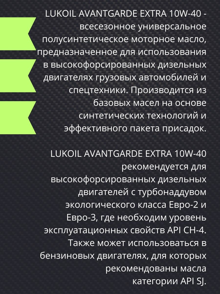 LUKOIL 1552371 Масло ЛУКОЙЛ авангард экстра 10W40 CH4CG4SJ 50л моторное (полусинт) 1шт