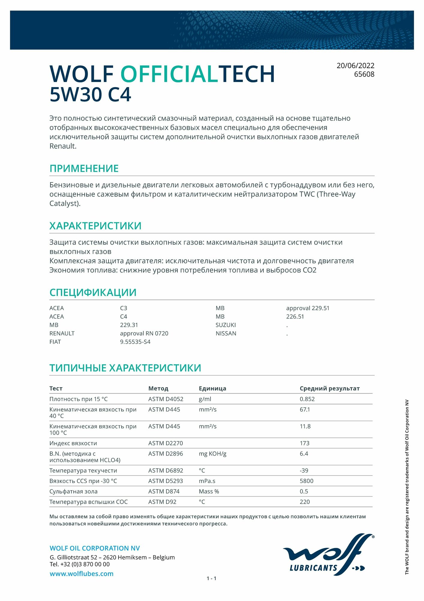 СохранитьWolf Моторное Масло Wolf Officialtech 5W-30 C4 4Л интересное: