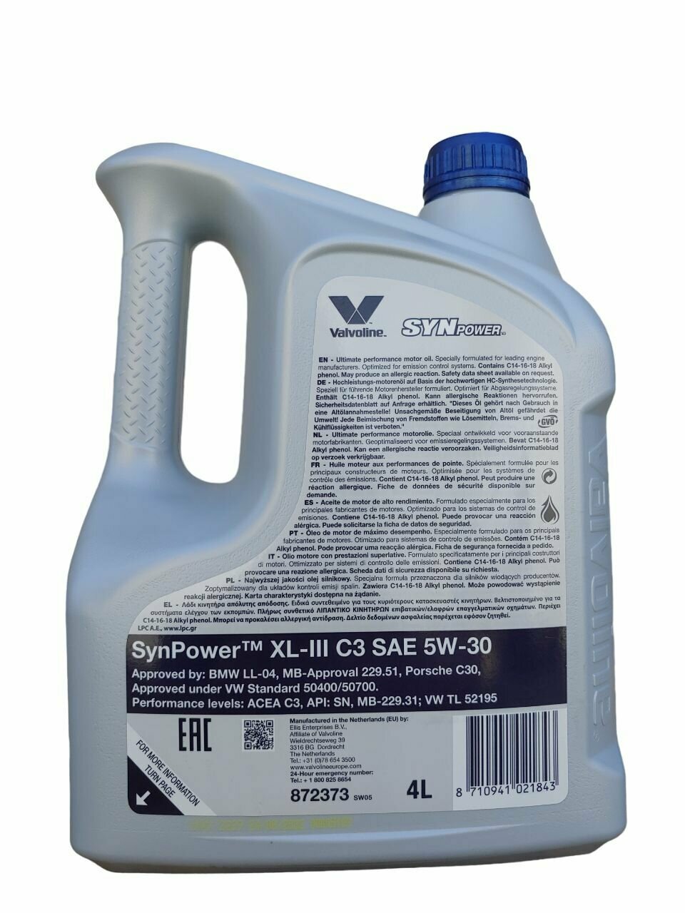 VALVOLINE 872372 SYNPOWER XL-III C3 5W30 1 SW,